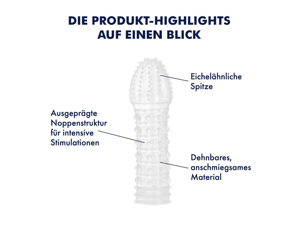 Hledáte způsob, jak oživit intimní život? S tímto návlekem na penis si můžete dopřát novou úroveň rozkoše. Návlek se pohodlně přizpůsobí penisu, a díky své struktuře poskytne vzrušující a intenzivní prožitek. Tělo návleku je zdobené velkými i malými výstupky, které stimulují erotogenní zóny obou partnerů. Špička má texturu připomínající žalud, která je pokrytá malými, jemnými hroty pro vzrušující masáž.