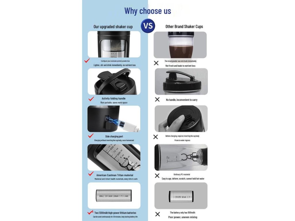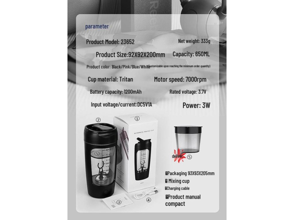 Elegantní růžové provedení a lehká konstrukce dělají z tohoto poháru stylový doplněk pro každodenní návštěvy posilovny, kanceláře nebo pro použití na cestách. Integrovaná dobíjecí baterie zajišťuje dlouhou výdrž na jedno nabití, takže se nemusíte starat o neustálou výměnu klasických baterií. Jednovrstvá struktura nádoby je navržena pro maximální objem při zachování kompaktních rozměrů, zatímco ergonomický tvar zaručuje pohodlné držení a snadnou manipulaci.