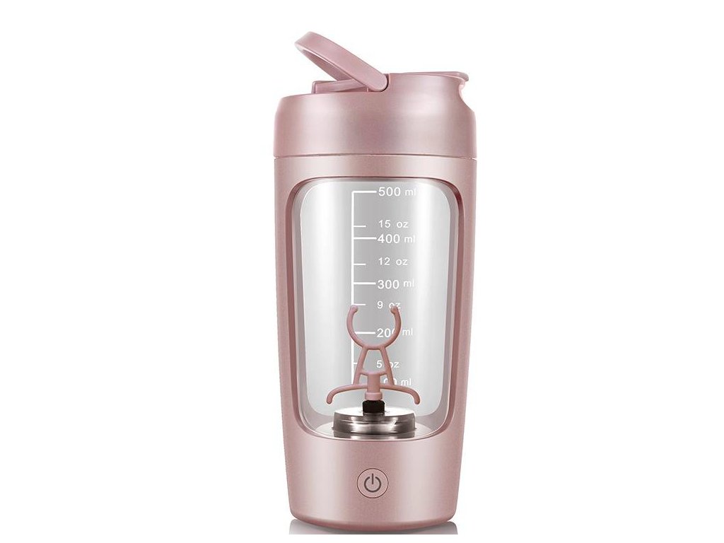 Elektrický samomíchací shaker na proteinové koktejly růžový
