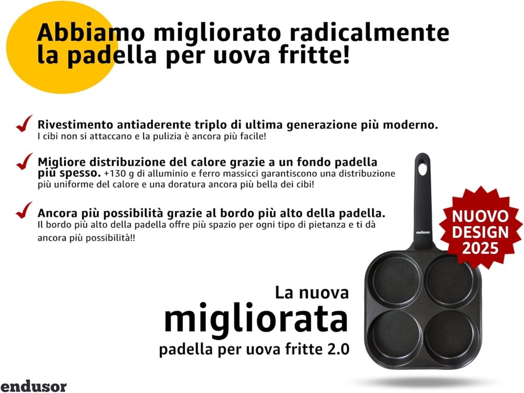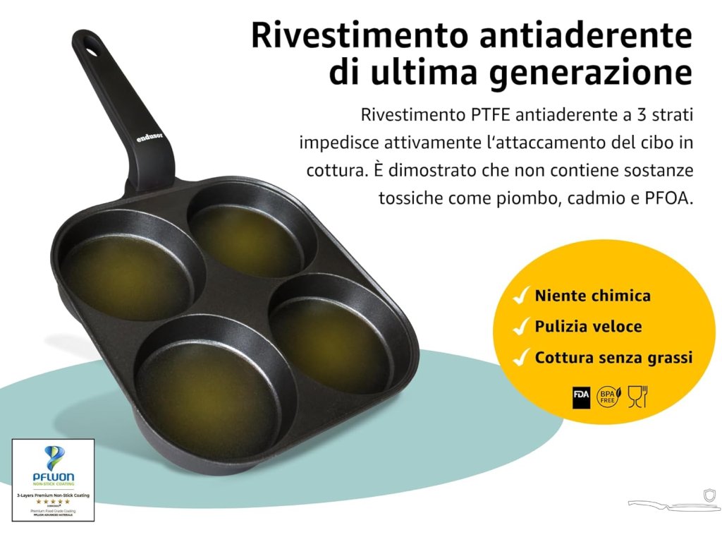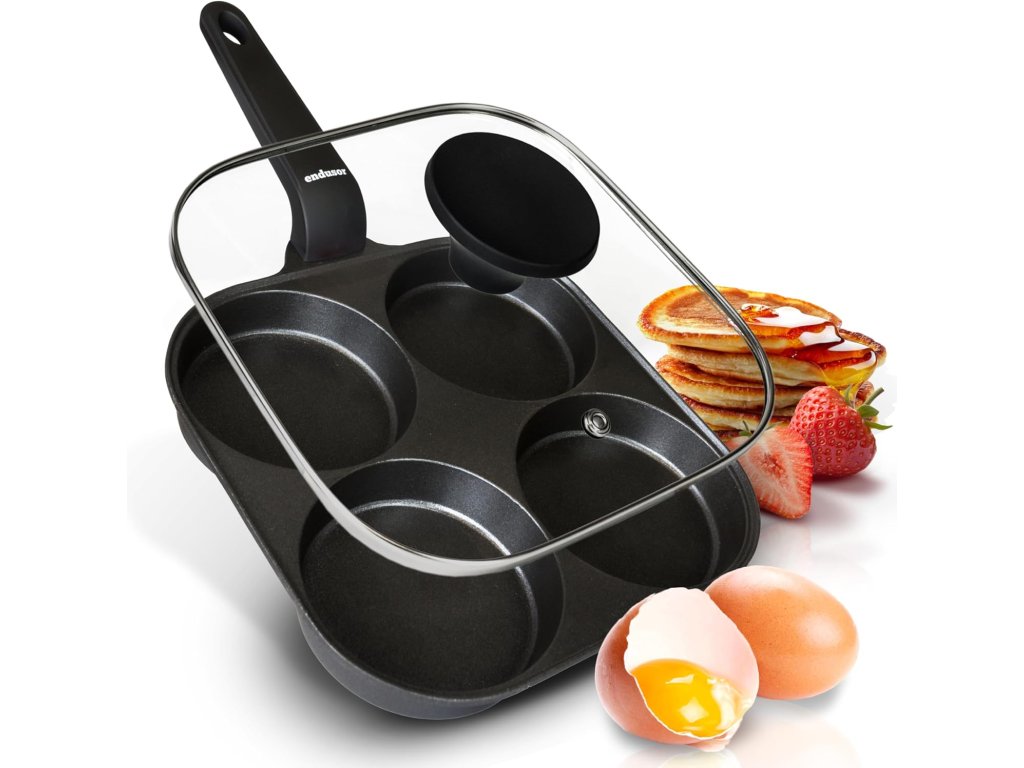 S nepřilnavou pánví endusor o průměru 21 cm snadno připravíte dokonale tvarované lívance, volská oka, mini omelety nebo jiné malé pochoutky. Pánev je vybavena čtyřmi praktickými formami a díky nejnovější generaci třívrstvého nepřilnavého povrchu se jídlo nepřipaluje ani bez použití oleje.