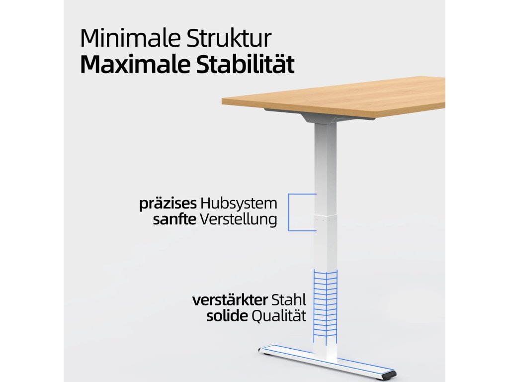 - Elektricky nastavitelná výška: Stůl má plynule nastavitelnou výšku od 71 cm do 120 cm (bez desky stolu). Šířka rámu je roztažitelná od 110 cm do 170 cm, což umožňuje flexibilní kombinace s různými deskami. Optimalizovaný rám s dvojitými nosníky z vysoce kvalitní vyztužené oceli je mimořádně stabilní, robustní a odolný. S rychlostí pohybu 32 mm/s je Ergofino DT20L lídrem v oboru.