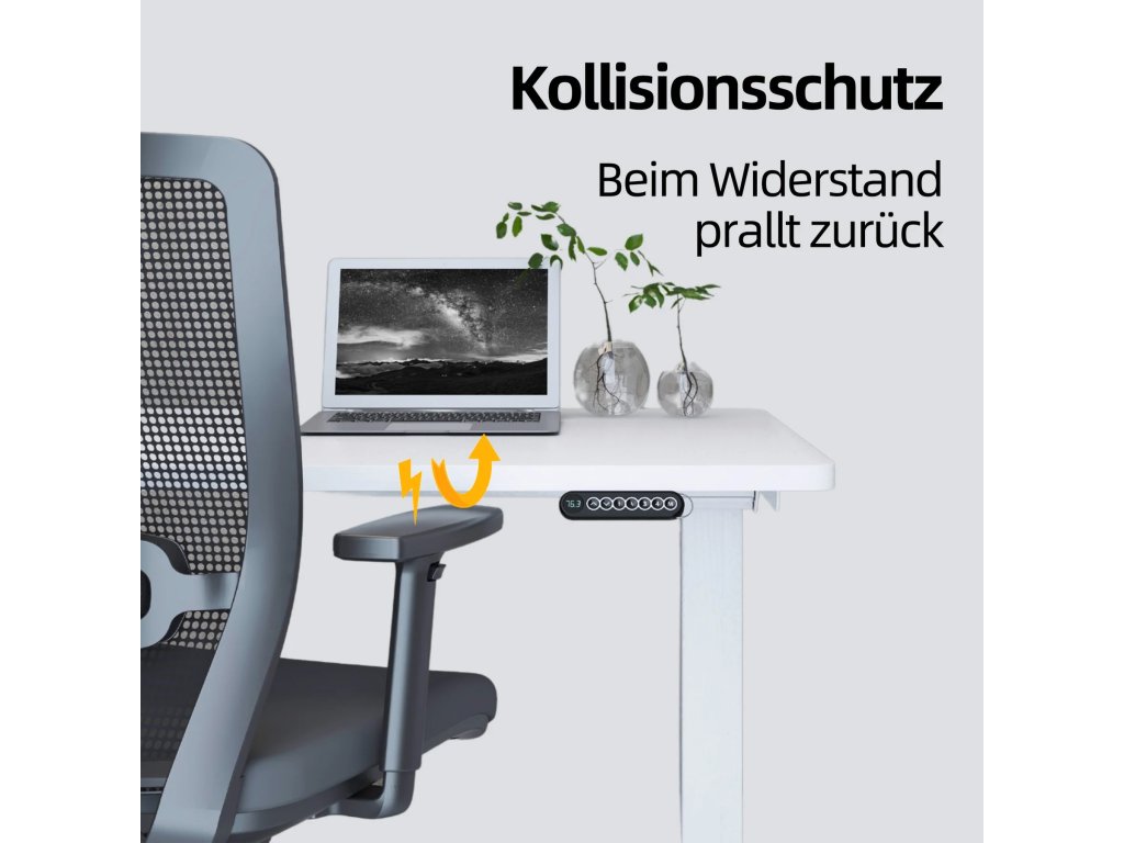 - Duální konstrukce motoru: Dva motory zaručují maximální nosnost až 100 kg. Ve srovnání s jednoduššími modely je tento stůl výrazně výkonnější! Udrží bez problémů monitor, notebook, tiskárnu i další předměty. Pohyb stolu je vždy ultra stabilní a tichý (<45 dB). Integrovaný antikolizní systém vás chrání před nárazy: když deska stolu narazí na odpor, systém se okamžitě mírně pohne opačným směrem a zastaví se.