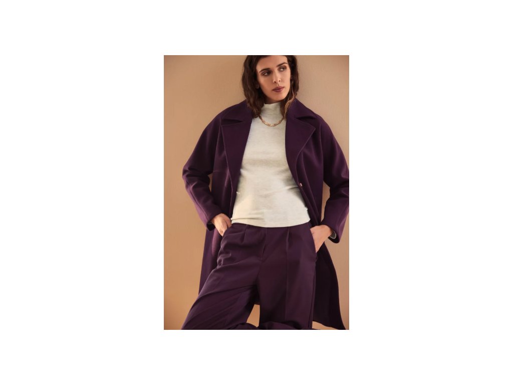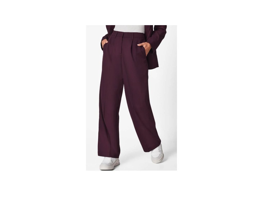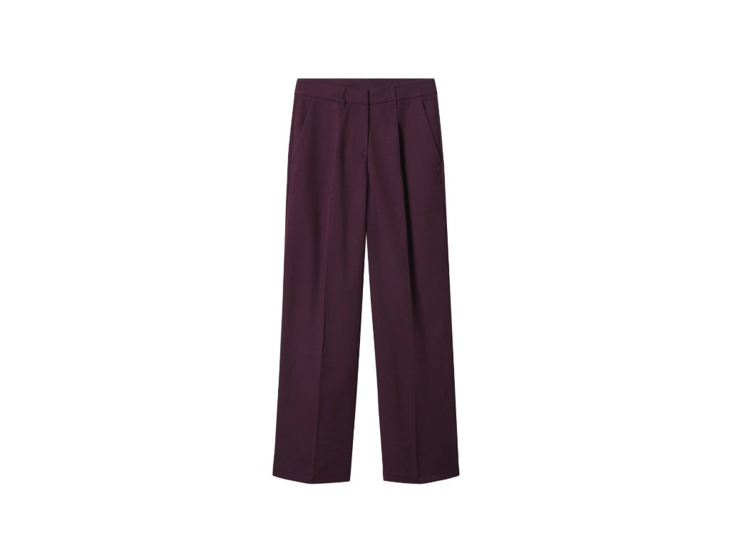 Materiál tvoří směs recyklovaného polyesteru, viskózy od společnosti Lenzing a elastanu LYCRA®, což zajišťuje tvarovou stálost a optimální přizpůsobení postavě. Kalhoty jsou opatřeny praktickými bočními kapsami a dekorativními falešnými kapsami na zadní straně. Přední část doplňují záhyby v pase, které podtrhují klasický vzhled, zatímco zapínání je řešeno kvalitním značkovým zipem YKK.