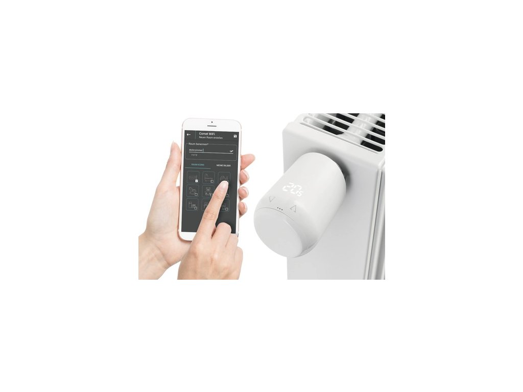 Comet Wifi je moderní elektronický regulátor určený pro montáž na běžná topná tělesa se závitem M30 x 1,5. Díky integrovanému Wi-Fi modulu se zařízení připojuje přímo k bezdrátové síti, což umožňuje vzdálené ovládání teploty z domova i na cestách prostřednictvím aplikace výrobce nebo systému SMART HOME by hornbach. Termostat pracuje v teplotním rozsahu 5 °C až 30 °C a umožňuje nastavení individuálních denních nebo týdenních programů, čímž výrazně snižuje náklady na vytápění.