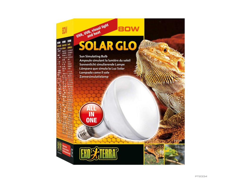 Žárovky Exo Terra Solar Glo jsou navrženy tak, aby poskytovaly správnou kombinaci UVA, UVB a vizuálního světla spolu se správným infračerveným A tepelným zářením. To umožňuje plazům termoregulovat své tělo a dosáhnout optimální teploty pro zvýšenou aktivitu a zdravé trávení potravy. Celkově zlepšují životní podmínky a fyziologickou pohodu vašich plazů a stimulují jejich reprodukční chování.