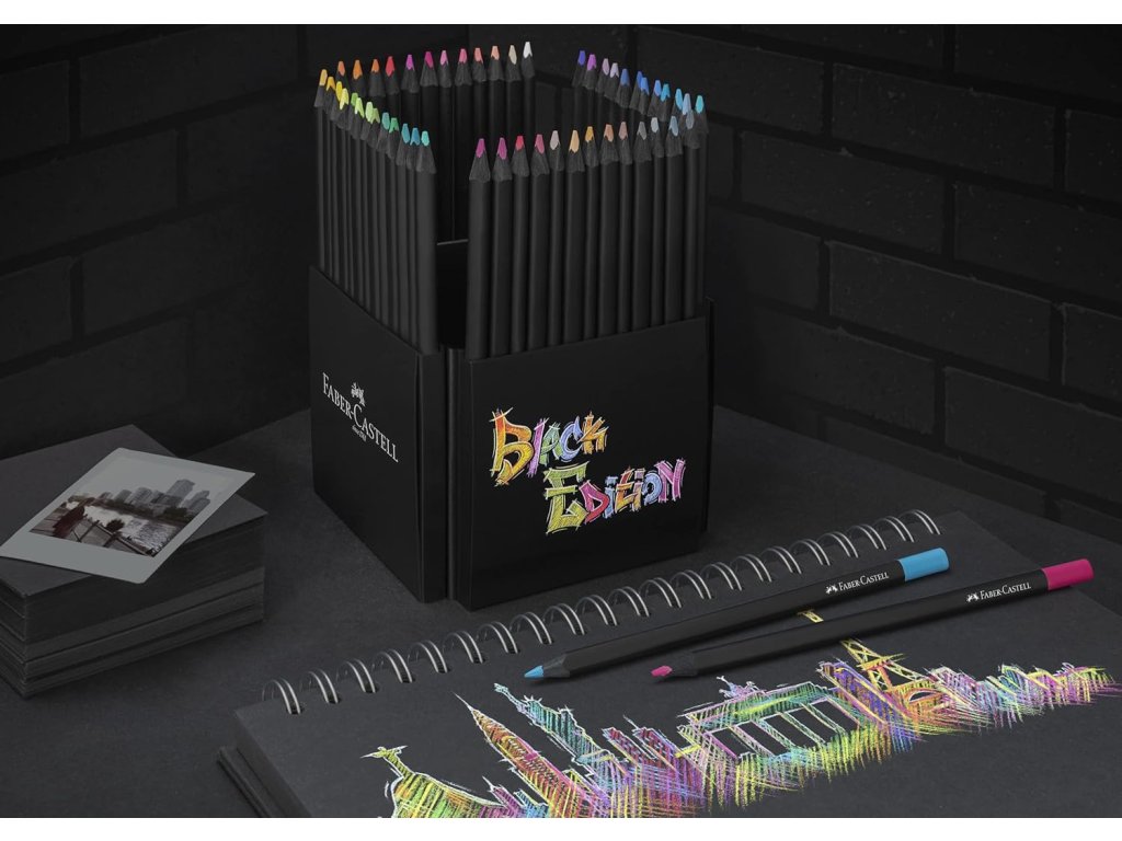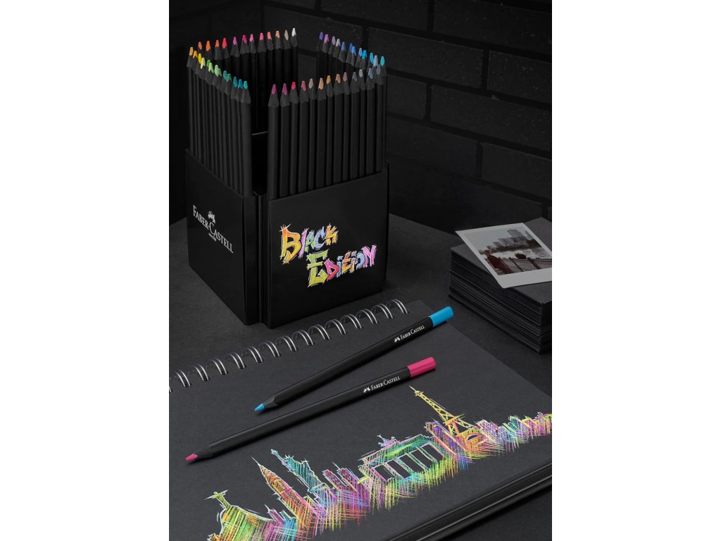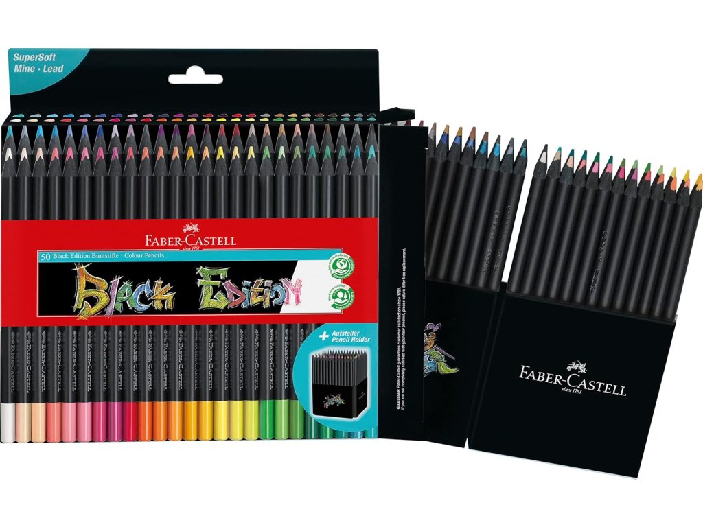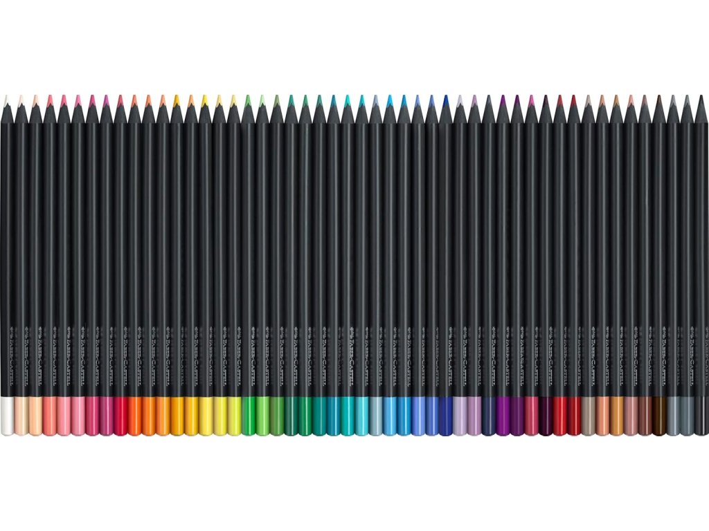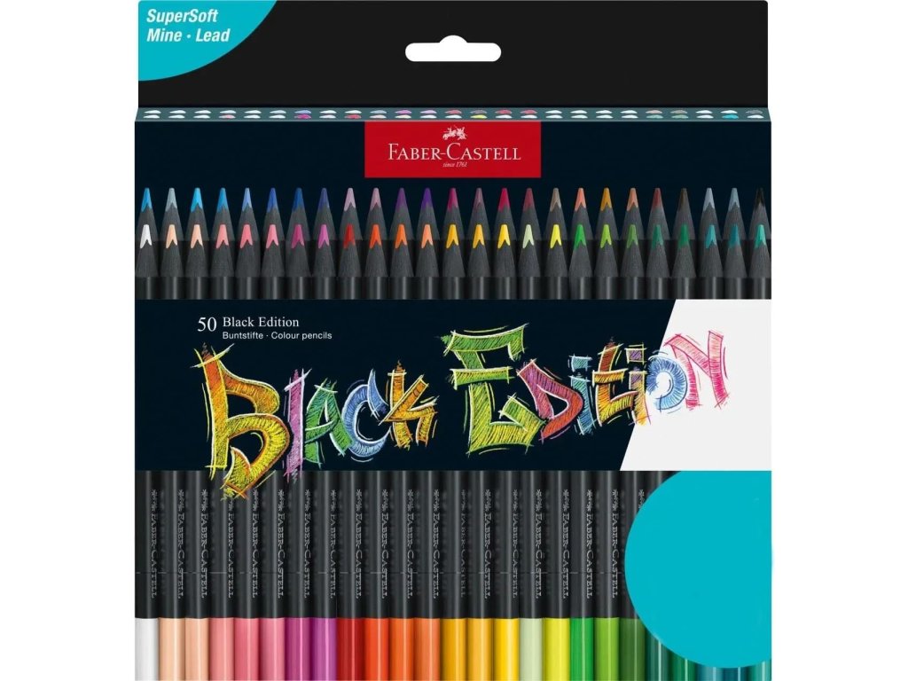 Sada 50 pastelek Faber-Castell Black Edition s černým dřevem a super měkkou tuhou pro syté barvy.