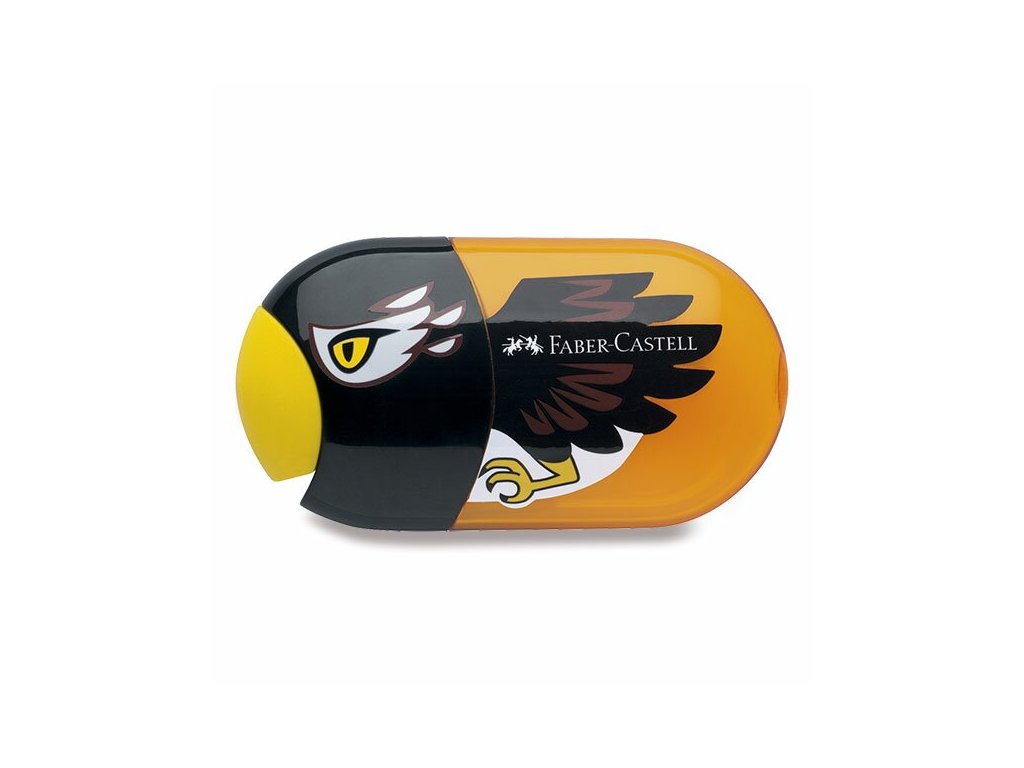 Kombinovaný set Faber Castell spojuje dvojité ořezávátko s nádobkou a gumu v jednom praktickém pouzdře s motivem orla. Díky dvojitému otvoru je ořezávátko vhodné pro různé průměry tužek. Design Orel od Faber Castell přináší na stůl prvek hravosti a elegance připomínající ostré vidění dravce. Skvělý pomocník pro školní i umělecké potřeby.