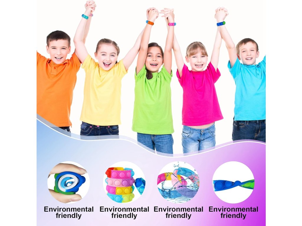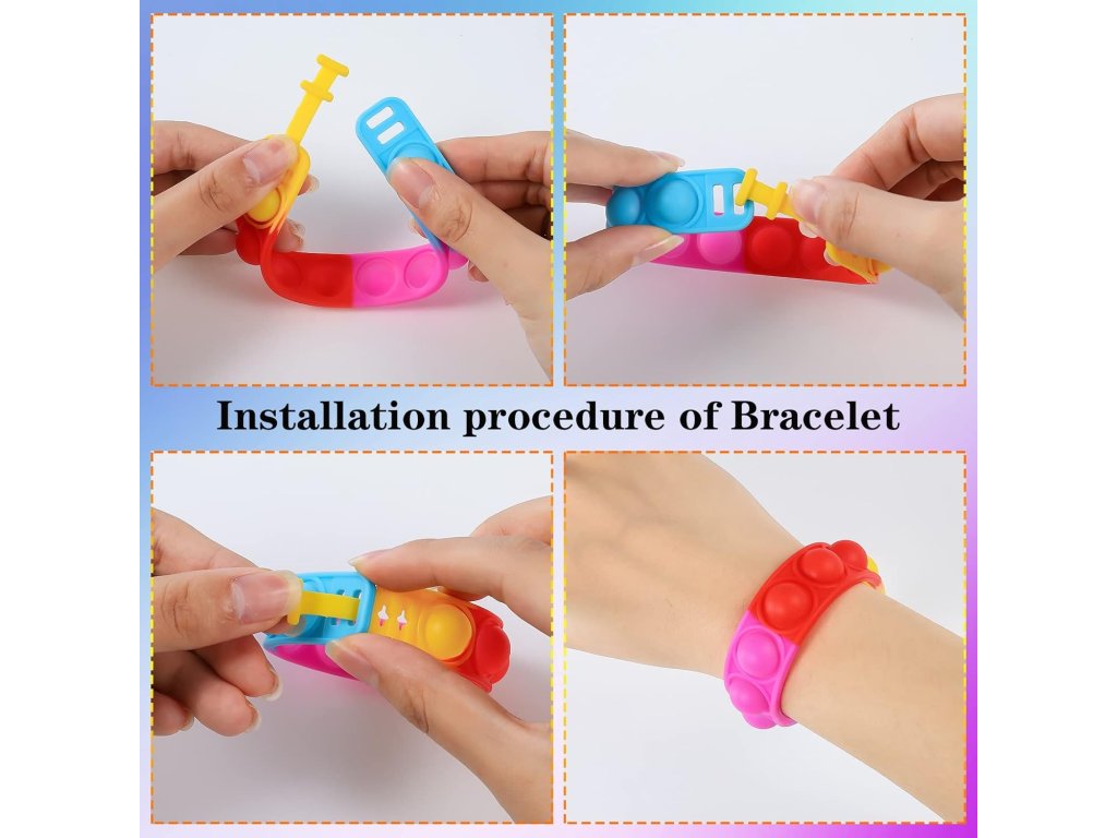 Hledáte zábavnou hračku, která navíc pomáhá zmírnit stres a neklid? Tyto pop náramky jsou multifunkční a stylové. Jejich jasné barvy a příjemný zvuk bublinek při stlačení dokážou efektivně uklidnit mysl a zlepšit soustředění. Jsou vyrobeny ze 100% bezpečného a vodotěsného silikonu bez BPA, který je odolný proti opotřebení a snadno se čistí. Každý náramek má devět bublinek a je vybaven nastavitelným jezdcem, takže jej můžete přizpůsobit velikosti jakéhokoli zápěstí.