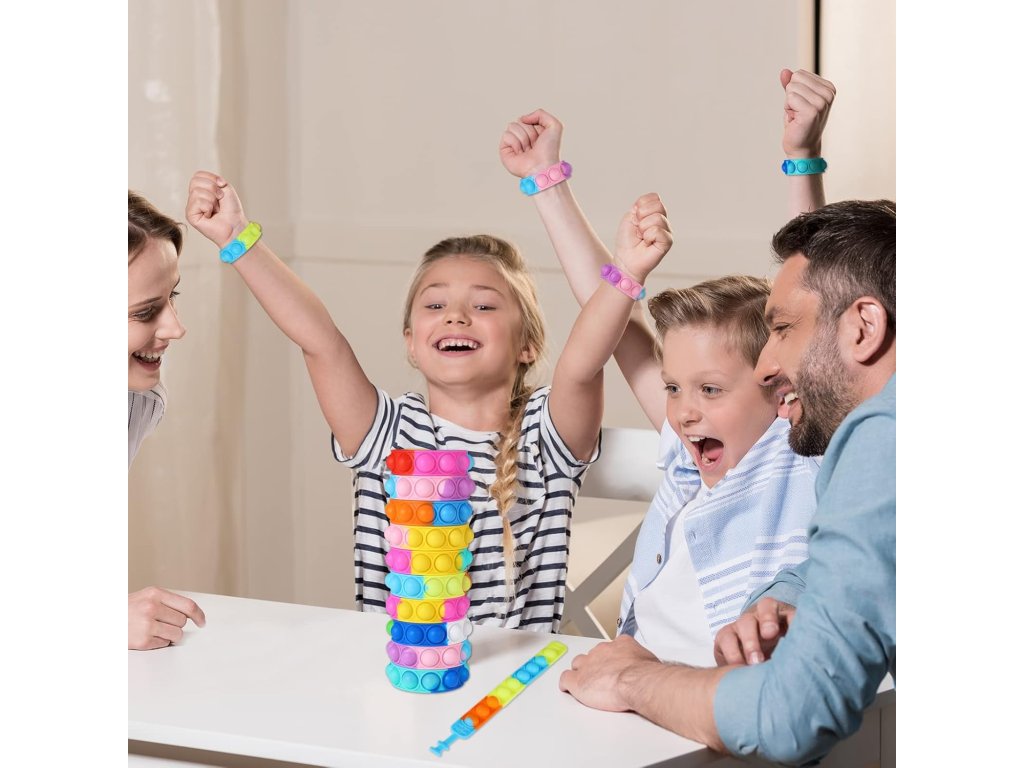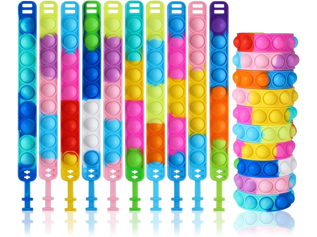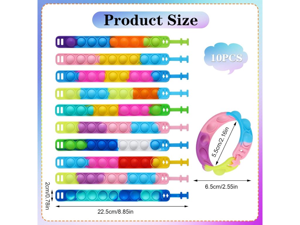 Tato sada deseti pestrobarevných pop náramků od značky Fanshiontide je ideální pro uvolnění stresu a úzkosti. Náramky jsou vyrobeny z potravinářského silikonu a fungují jako senzorická hračka, která při stisknutí bublinek vydává uklidňující zvuk. Jsou nastavitelné a vhodné pro děti i dospělé.