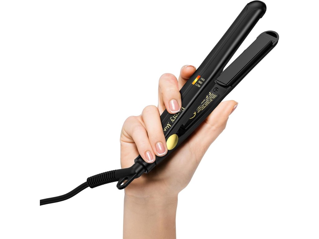 Plovoucí konstrukce destiček o šířce přibližně 1,3 cm zajišťuje plynulý skluz bez zachytávání vlasů a umožňuje snadnější přístup ke kořínkům. Celková délka přístroje činí 20 cm, což v kombinaci s duálním napětím 100 až 240 V činí z tohoto modelu ideální volbu pro cestování.