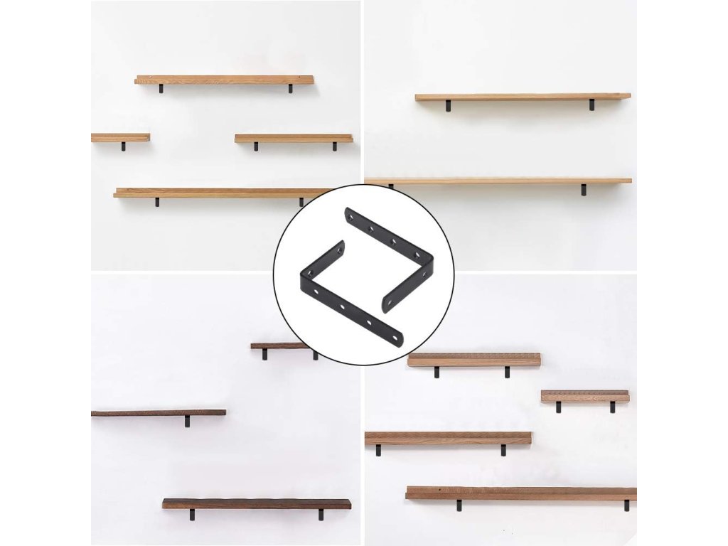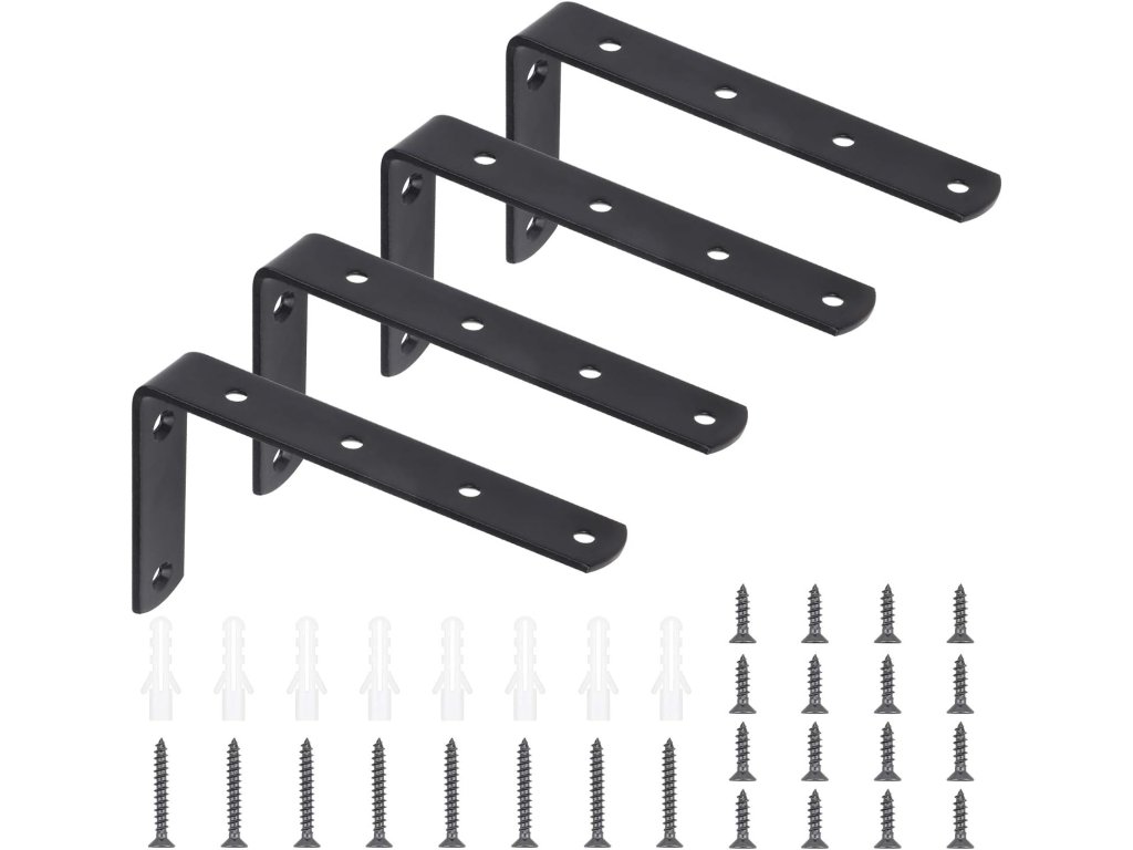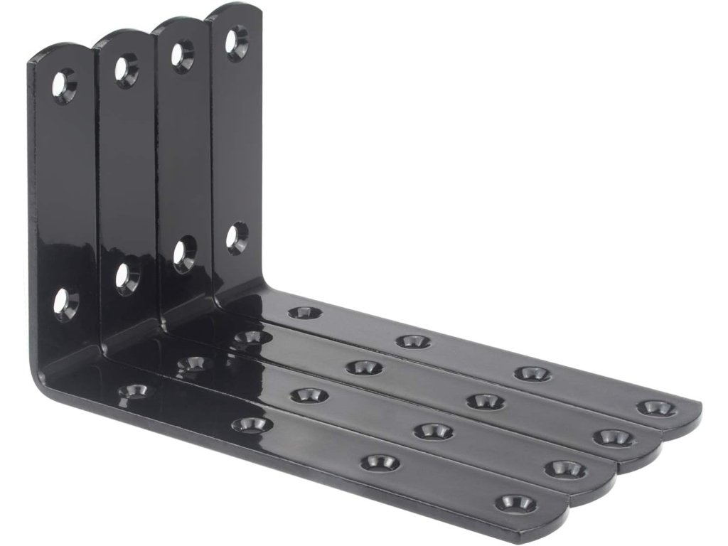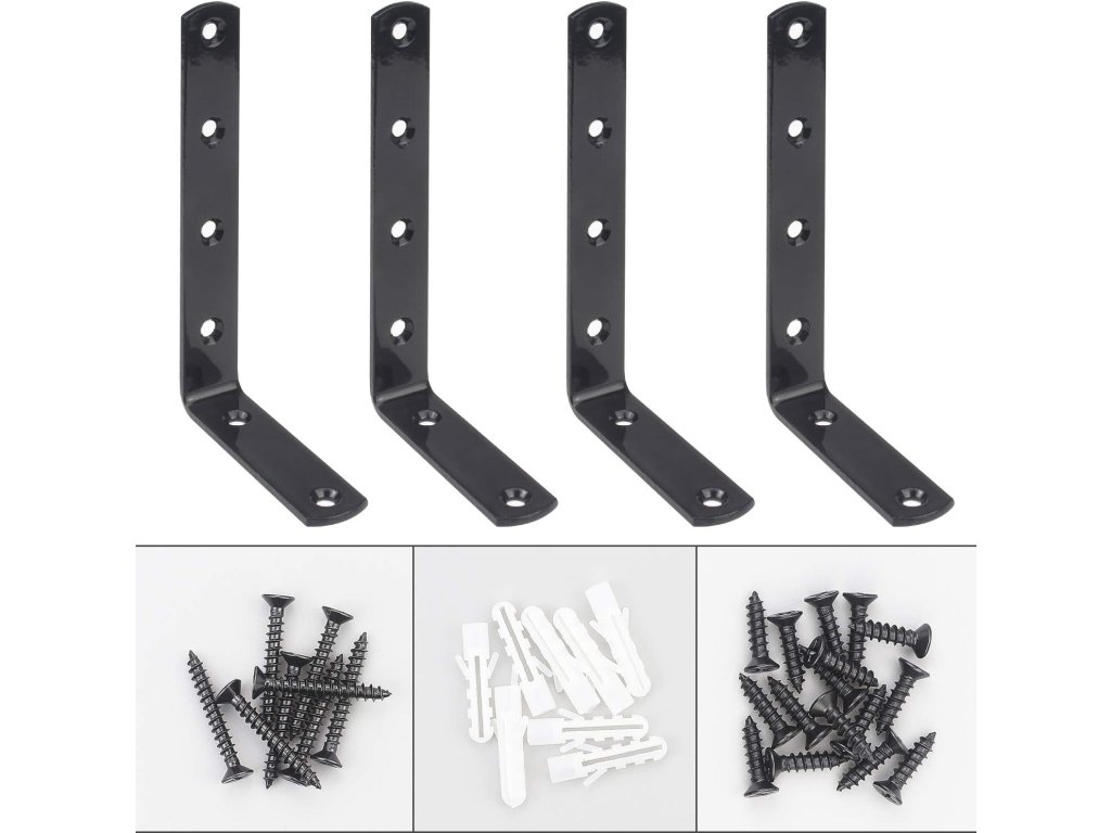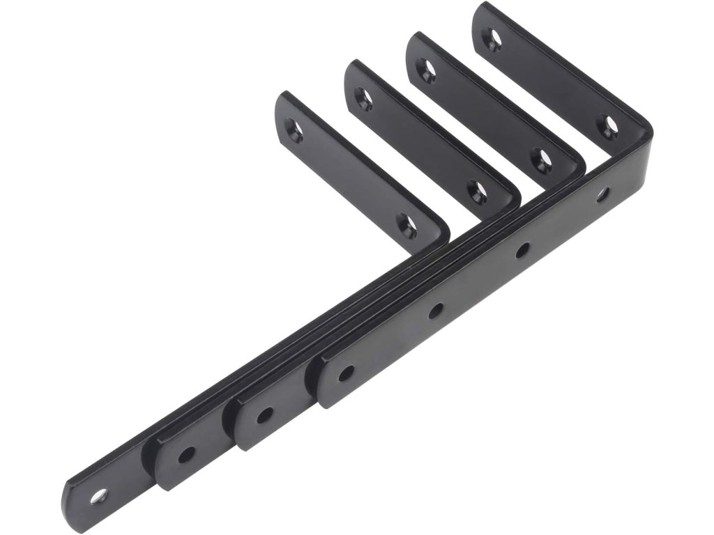 Tato sada čtyř černých L držáků od značky Favordrory je ideální pro instalaci polic nebo regálů.
