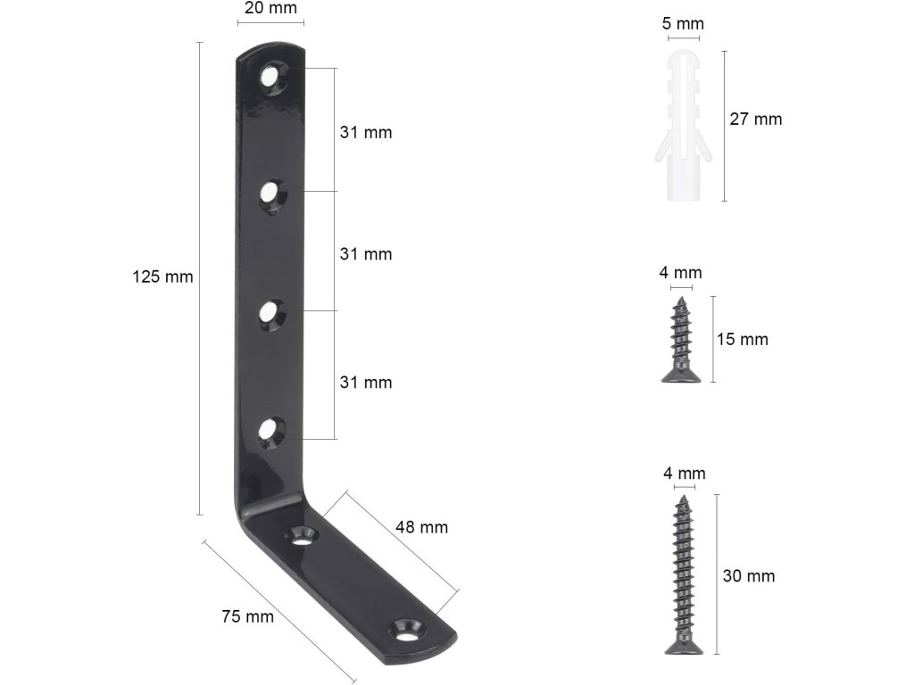 S těmito robustními a esteticky příjemnými L držáky můžete snadno a bezpečně připevnit plovoucí police nebo regály na zeď. Držáky jsou vyrobeny z zesíleného železa a mají matnou černou povrchovou úpravu, která je odolná proti korozi a nečistotám.