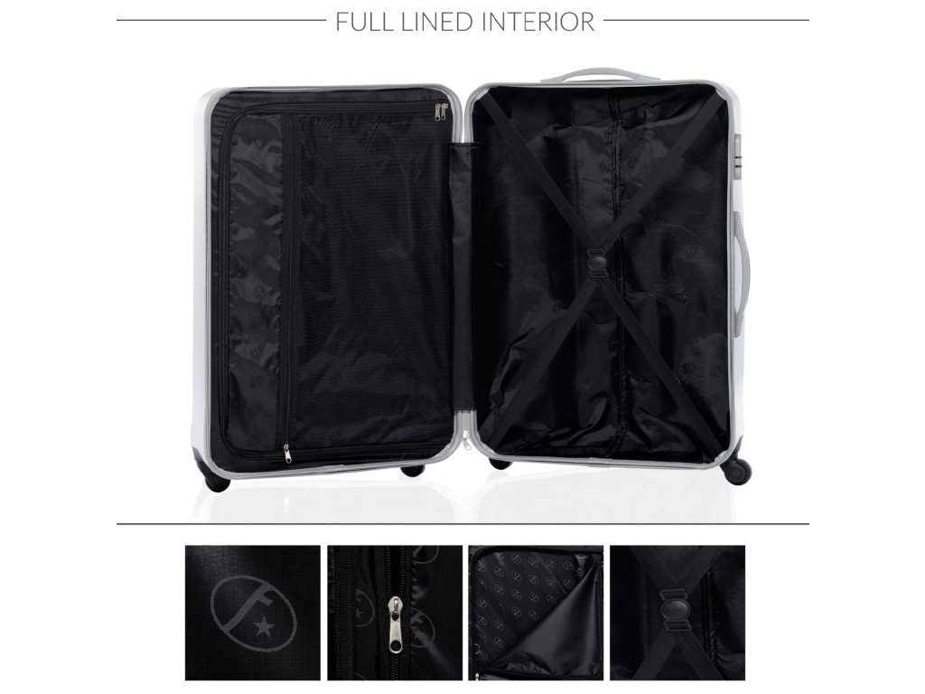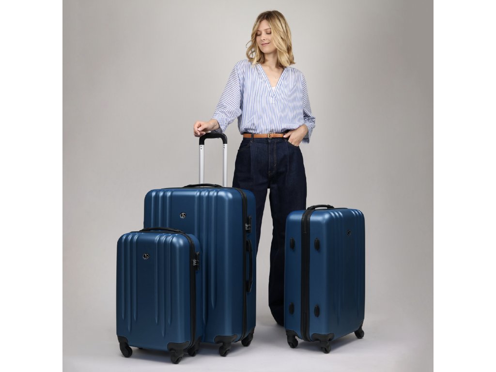 Moderní třídílná sada tvrdých kufrů FERGE Marseille v elegantní modré barvě je ideální pro každého cestovatele. Kufry jsou vyrobeny z vysoce kvalitního ABS plastu s unikátní úpravou DURE-FLEX, která zajišťuje vysokou odolnost proti poškození a zároveň nízkou hmotnost. Sada obsahuje tři kufry různých velikostí (XL: 110 l, M: 77 l, S: 38 l – vhodný jako příruční zavazadlo). Každý kufr je vybaven čtyřmi hladce otočnými kolečky s 360° rotací a praktickou dvoustupňovou teleskopickou rukojetí pro snadnou manipulaci. Dva větší kufry mají navíc horní a boční madlo pro pohodlné přenášení. Promyšlený vnitřní prostor s přepážkami a popruhy usnadňuje balení a udržuje věci na svém místě. Bezpečnost vašich zavazadel zajistí integrovaný třímístný kombinační zámek. FERGE dbá na spravedlivou a ekologickou výrobu v souladu s EU REACH.