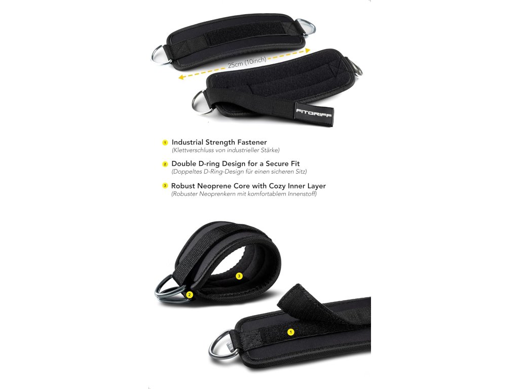 Fitgriff® kotníkové popruhy V1 (2 kusy) jsou ideálním doplňkem pro precizní posilování spodní části těla na kladkostroji.