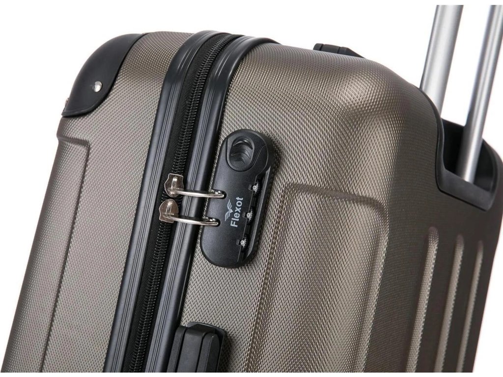 Flexot F2045 je moderní cestovní kufr s tvrdou skořepinou (Hardcase) z nejnovější série Flexot určený pro časté cestovatele. Je vyroben z elastického a lehkého plastu který se při tlaku vrací do původního tvaru čímž se minimalizuje riziko prasknutí. Kufr v bronzově zlaté barvě ve velikosti L má objem 70 litrů a váží 3,20 kg. Je vybaven dvojitými kolečky (Flexot Twins) otočnými o 360° pro vyšší stabilitu a integrovaným číslicovým zámkem.