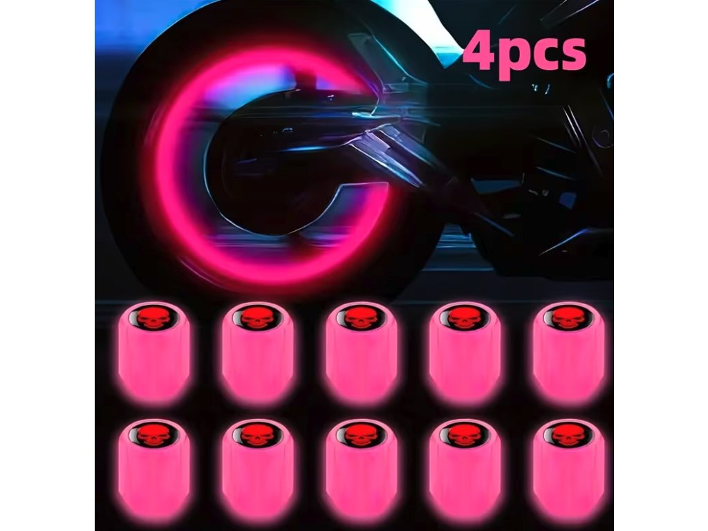 Stylové růžové čepičky na ventilky představují originální doplněk pro každého, kdo chce odlišit své vozidlo. Jsou vyrobeny ze speciálního materiálu, který absorbuje světlo a následně ve tmě fluoreskuje růžovou barvou. Tento efekt nejen esteticky vylepšuje vzhled kol, ale také přispívá k pasivní bezpečnosti tím, že zvyšuje viditelnost jedoucích vozidel za snížené viditelnosti. Horní část čepičky zdobí detailní motiv lebky, který dodává kolům moderní charakter.