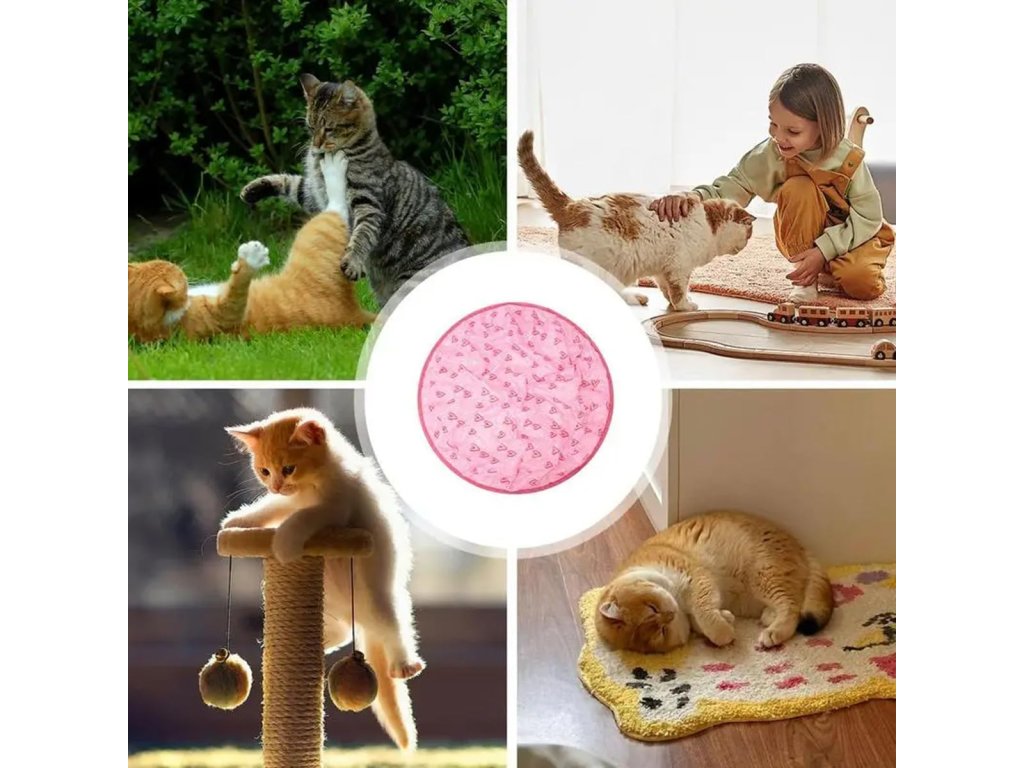 FOFOS 2v1 interaktivní hrací podložka v růžové barvě simuluje lov a slouží jako podložka nebo zábavný nástroj pro kočky. Má rozměry 70x70 cm, je vyrobena z jemného bavlněného materiálu a je pratelná v pračce. Podporuje aktivitu, uvolňuje energii a je vhodná pro koťata i dospělé kočky.