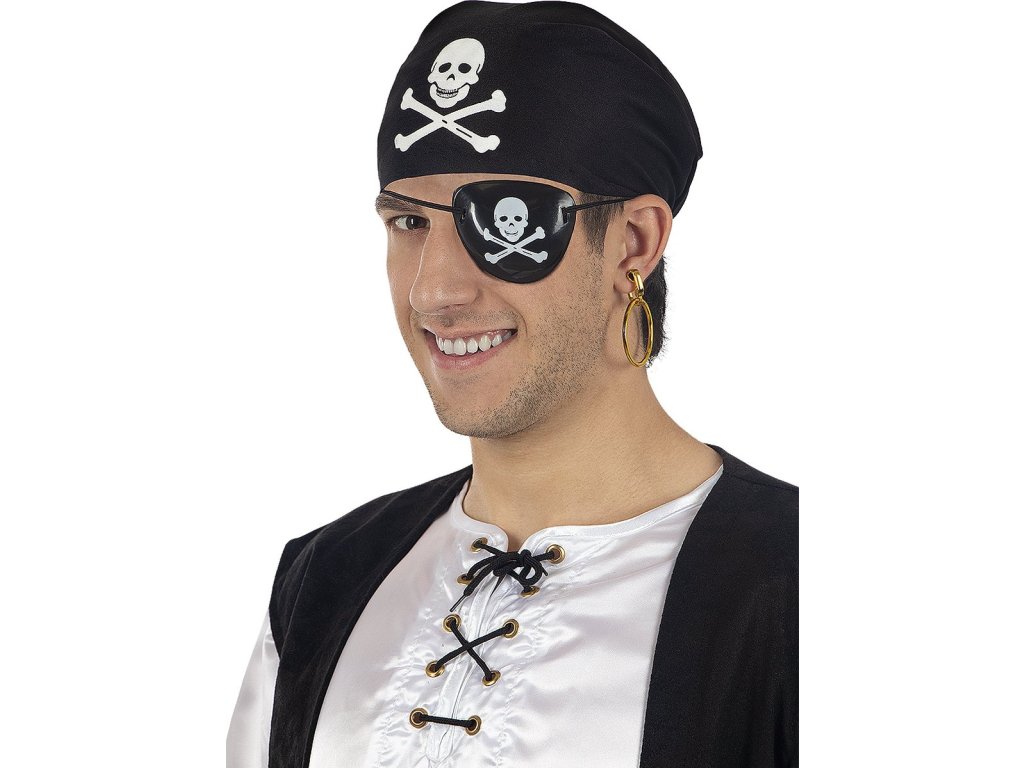 FUNIDELIA Sada pirátských doplňků - černá. Obsahuje šátek na hlavu, náušnici a pásku přes oko. Unisex pro dospělé. Ideální pro karneval, Halloween a maškarní.
