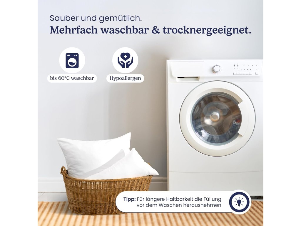 Snadná údržba: Polštáře jsou pratelné v pračce až do 60 °C, což zajišťuje snadnou a hygienickou údržbu.