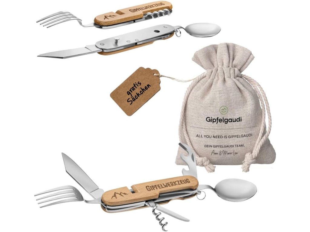 Gipfelgaudi Kempinkový příbor 5 v 1 nerez ocel dřevo skládací