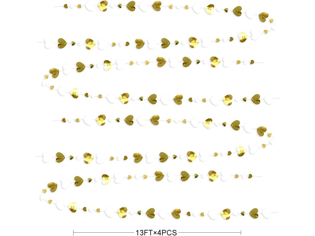 Girlanda s motivem srdcí, 4 kusy, bílo-zlatá, 15,8 metru
