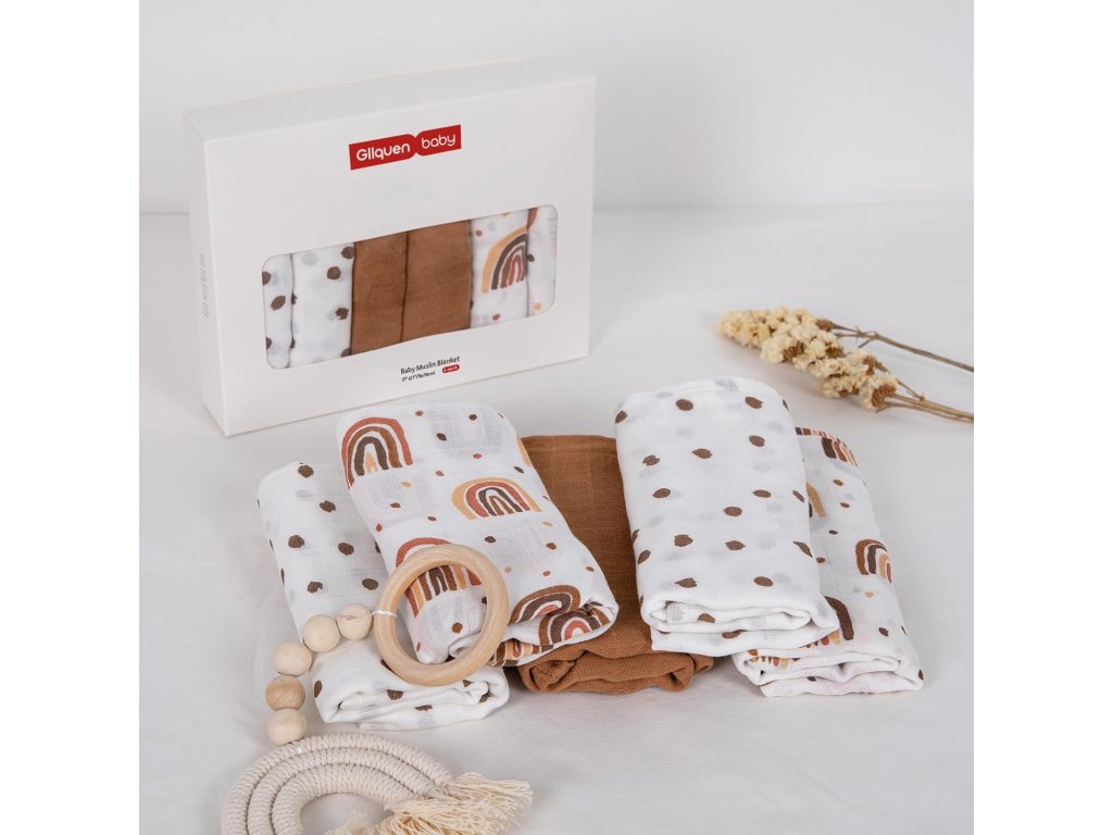 GLLQUEN BABY mušelínové plenky pro miminka sada 6 kusů duha