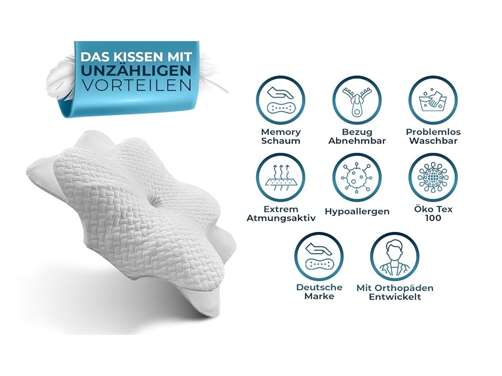 Polštář je skutečný všestranný pomocník, ideální pro ty, kdo pociťují napětí nebo mají neklidný spánek. Podporuje uvolněnou polohu hlavy a krku, což vede k osvěžujícímu spánku. Jeho paměťová pěna třídy 1 se speciální podporou krku se přizpůsobí jakékoli spací poloze – ať už spíte na zádech, na boku, nebo na břiše. Mnoho uživatelů uvádí, že díky němu začínají den svěžejší a mají klidnější noc.