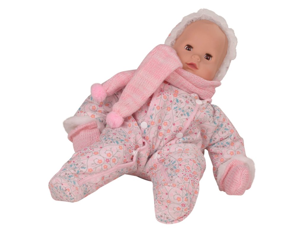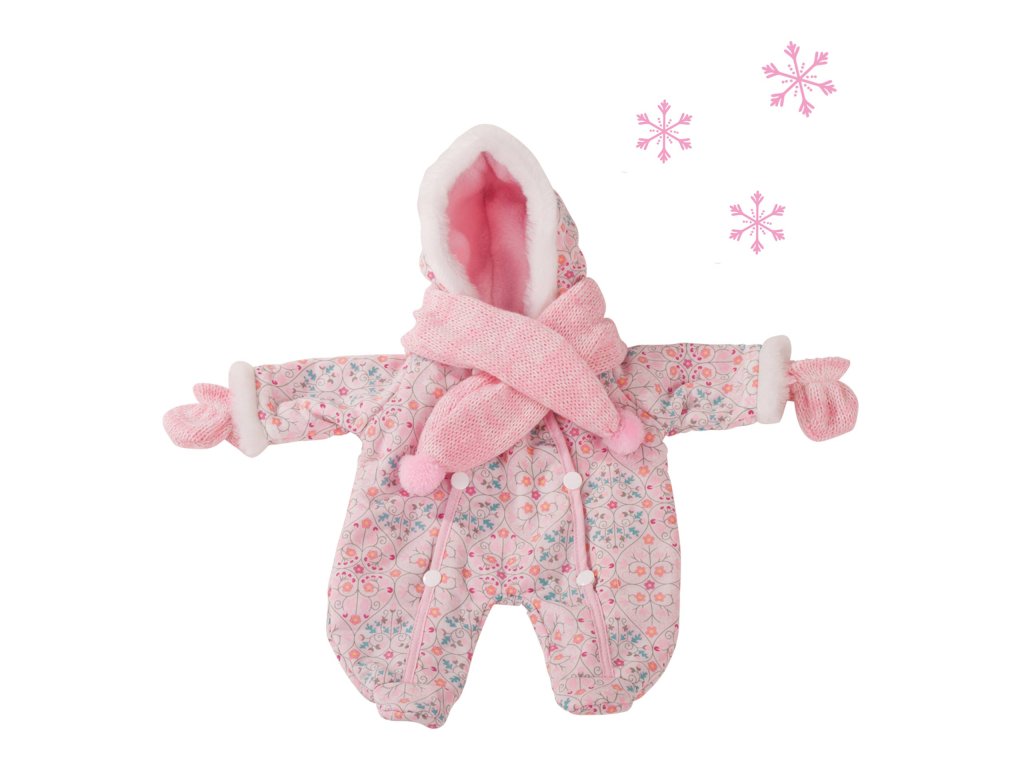 Oblečení v růžové barvě s květinovým vzorem je ideální pro chladné zimní dny. Overal má na přední straně knoflíky, což usnadňuje oblékání. Sada je vhodná pro děti od 3 let. Balení obsahuje tři kusy oblečení, panenka není součástí balení.