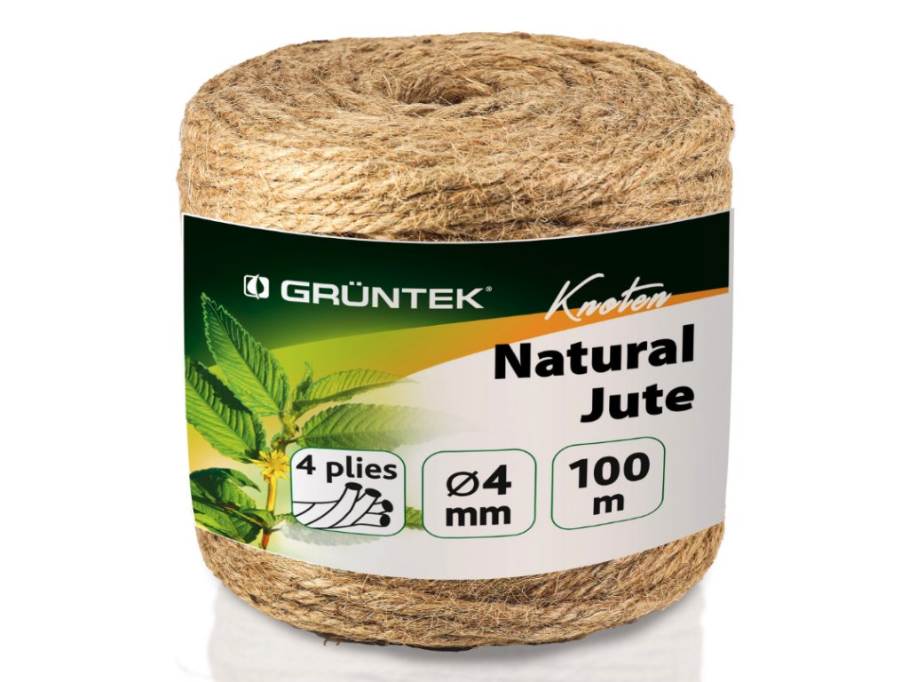 Grüntek Zahradní jutový motouz je 100m role 4mm tlusté jutové šňůry v přírodní hnědé barvě. Je vyroben ze 100% přírodního, biologicky odbouratelného jutového vlákna se 4 propletenými prameny pro vysokou pevnost v tahu a flexibilitu. Je ideální pro ekologické použití na zahradě (vázání rostlin, upevňování pytlů, ohraničení záhonů, zavěšení nářadí) a také pro řemeslné práce, dekorace nebo jako dárková stuha. Jutové vlákno má přirozeně charakteristický zápach, který lze vyvětrat. Váží 754 g.