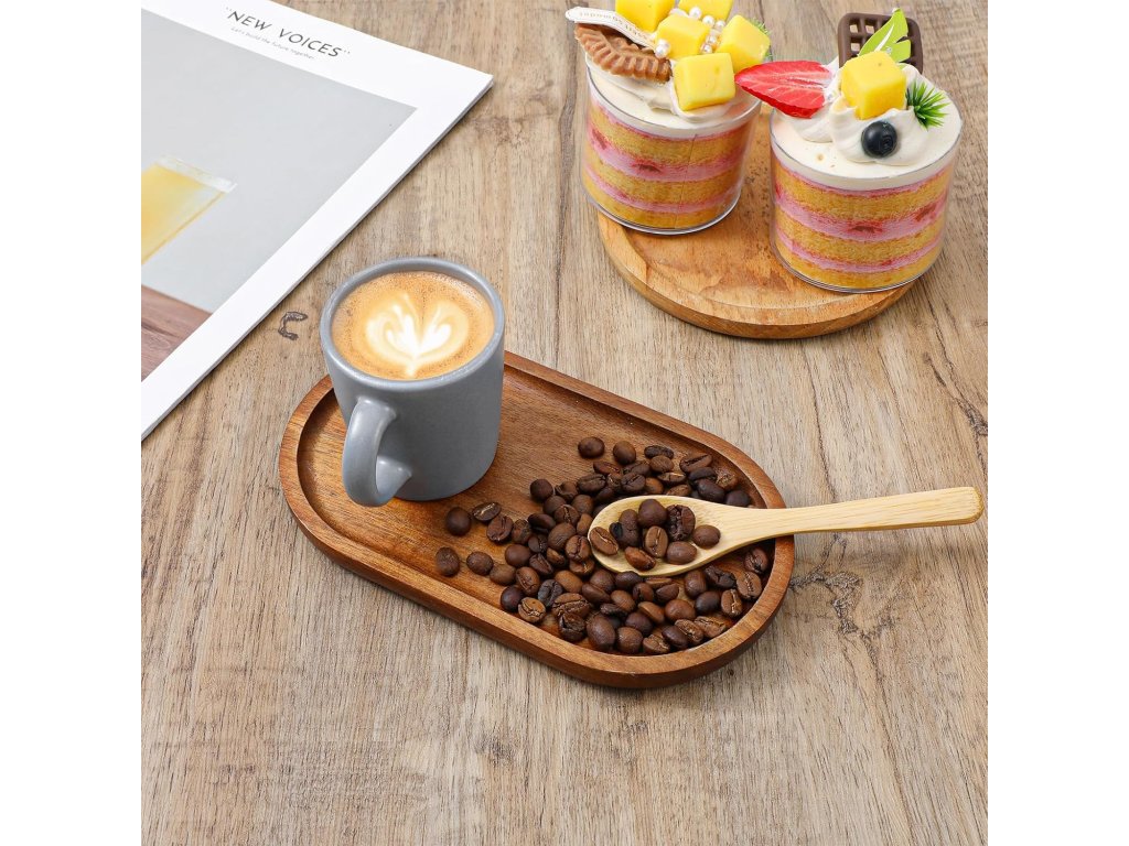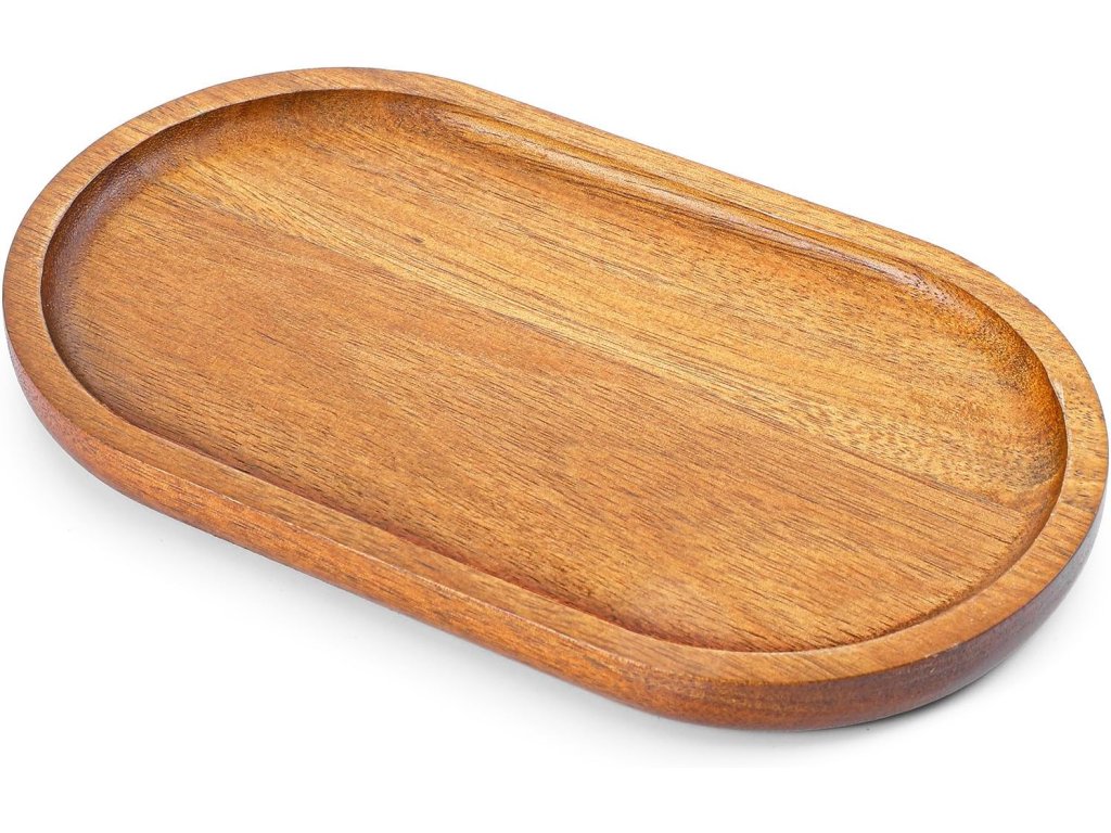 Oválný podnos značky Guduling je vyroben z vysoce kvalitního masivního akátu, který je známý svou mimořádnou odolností a stabilitou. Každý kus je originálem díky specifické textuře dřeva a barevným nuancím, které vznikají přirozeným růstem stromu. Design s mělkým vnitřním výklenkem zajišťuje, že sklenice, lahvičky nebo drobné předměty zůstanou bezpečně na svém místě bez rizika sklouznutí. Hladký, jemně opracovaný povrch je velmi příjemný na dotek a usnadňuje údržbu – pro čistý vzhled postačí otření vlhkým hadříkem. Své uplatnění najde nejen v kavárnách a čajovnách, ale také jako vkusný organizér na kosmetiku v koupelně nebo dekorativní prvek na konferenčním stolku.