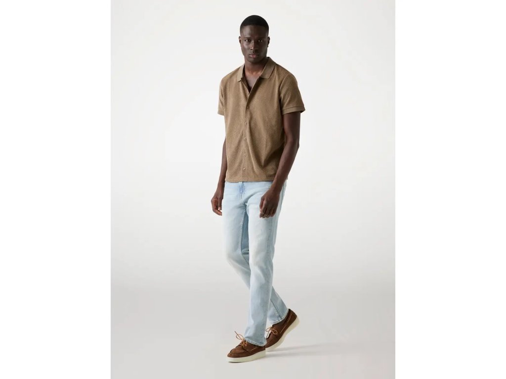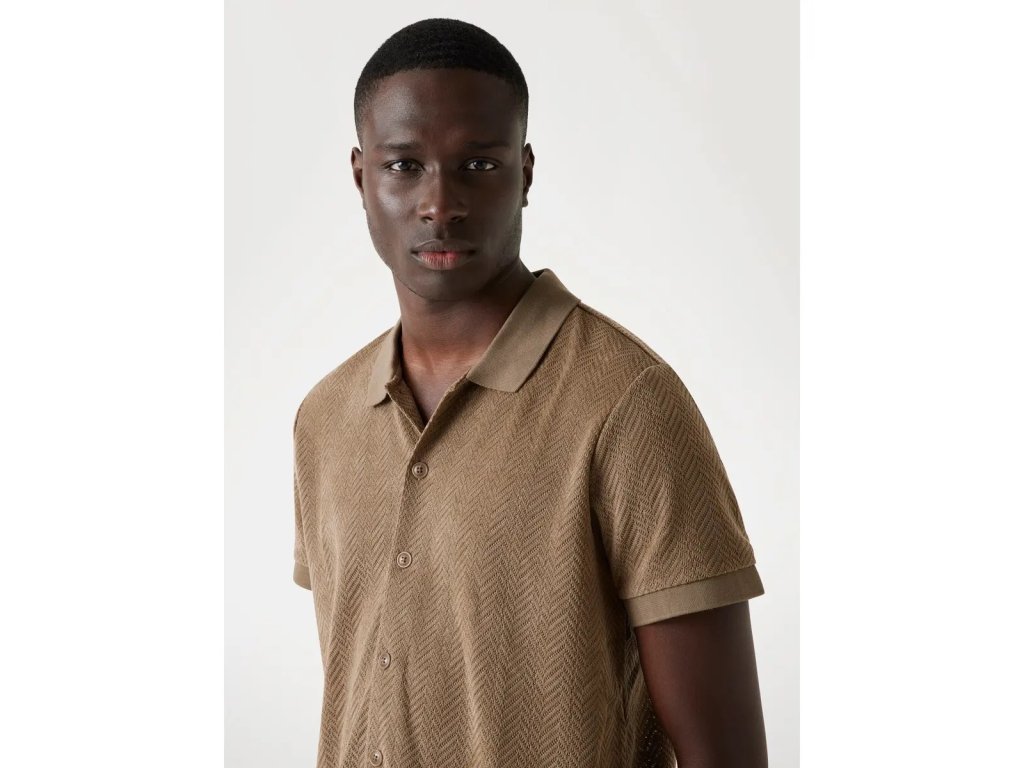Lehký polyesterový materiál je příjemný na nošení a snadno se udržuje. Košile má klasické zapínání na knoflíky a krátké rukávy, což z ní činí ideální kousek pro teplejší období nebo neformální společenské události.