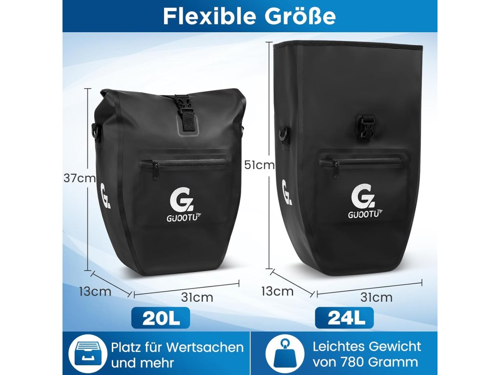 S brašnami GUOOTU budete mít vždy dostatek místa na všechno, co potřebujete. Ať už jedete na piknik, na nákup, nebo do práce, tyto brašny vám usnadní život. Celkový objem 48 litrů (2x 24 litrů) a nosnost až 10 kg na jednu brašnu zaručuje, že se vám do nich vejde vše, co potřebujete.