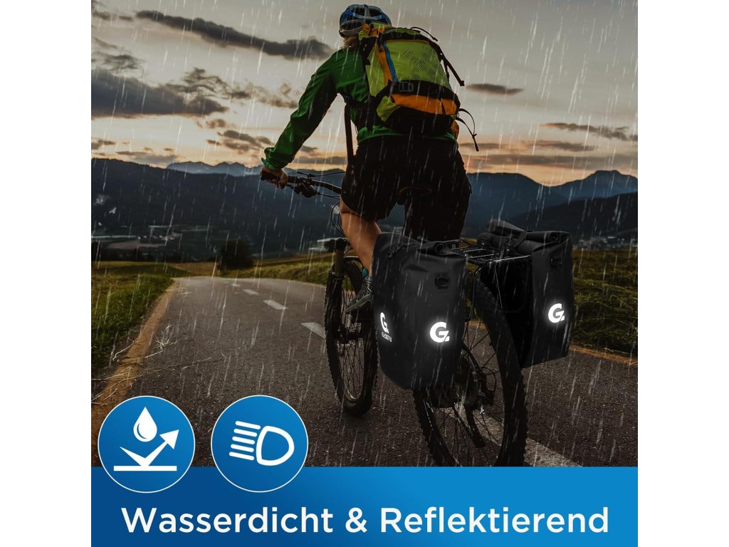 Bezpečné cestování: Vyrobené z odolného a vodotěsného PVC materiálu, který chrání obsah před deštěm a nečistotami. Reflexní prvky na brašnách zvyšují viditelnost v noci.