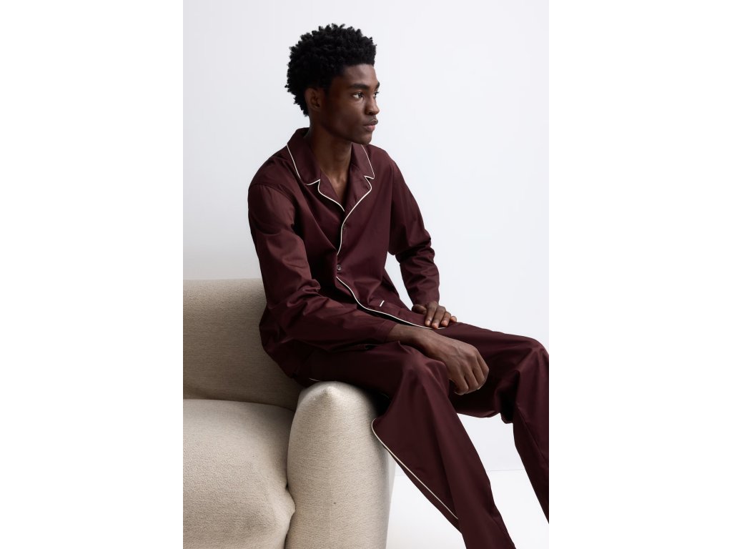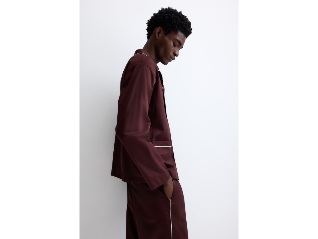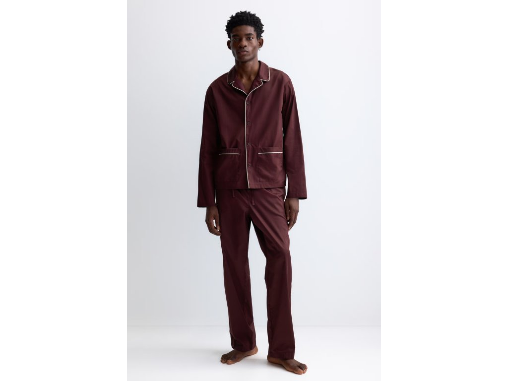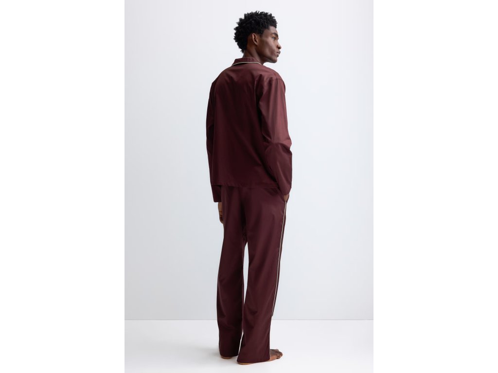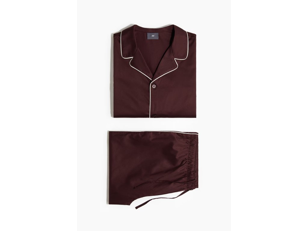 H&M Bavlněné saténové pyžamo – vínové, vel. M