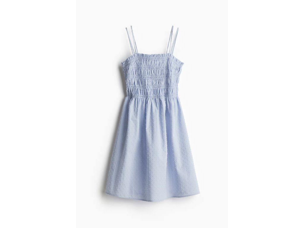 H&M bavlněné šaty s žabkováním bleděmodré XXS