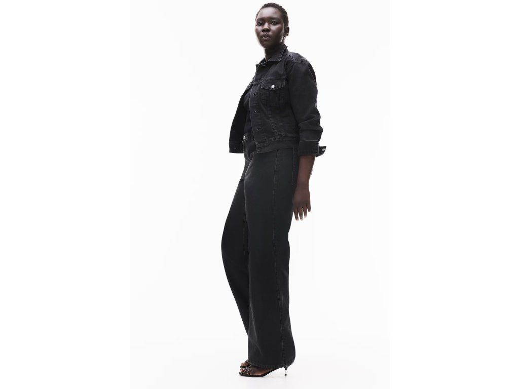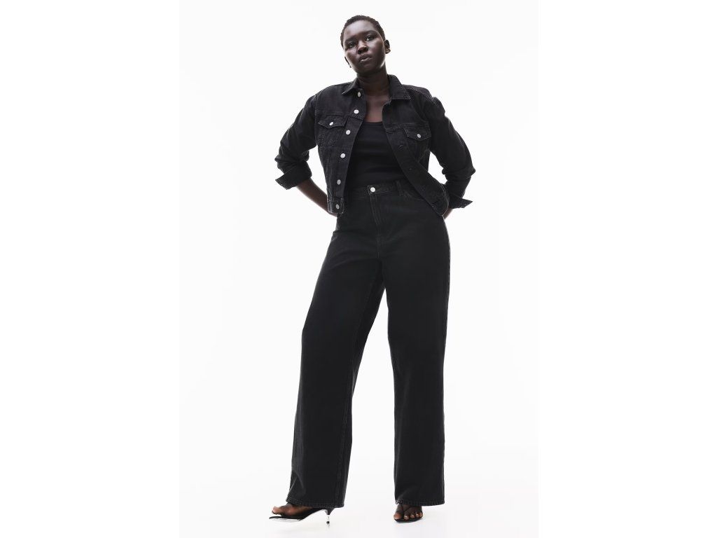 H&M Curvy Fit Wide Ultra High Jeans černé 38