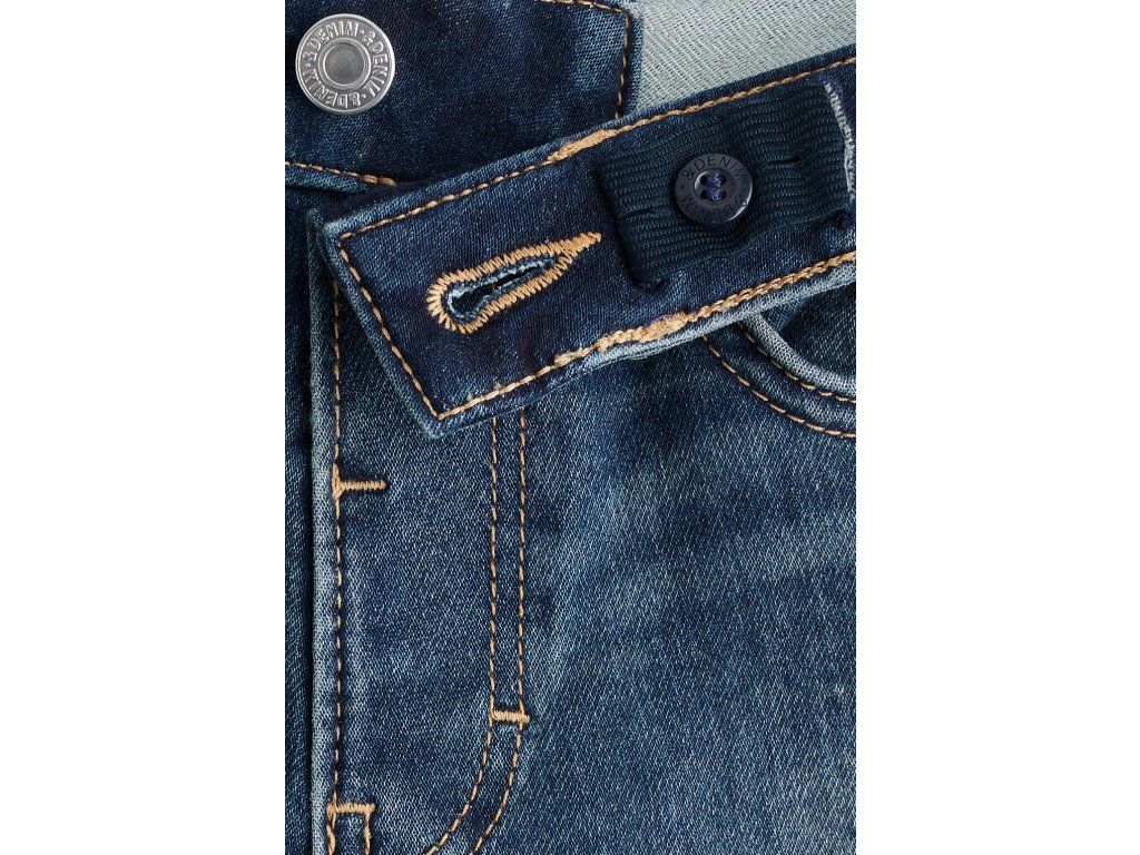 Zúžené nohavice dodávají moderní vzhled. Nastavitelný pas umožňuje perfektní přizpůsobení, zatímco falešný poklopec s knoflíkem zachovává klasický denimový styl.