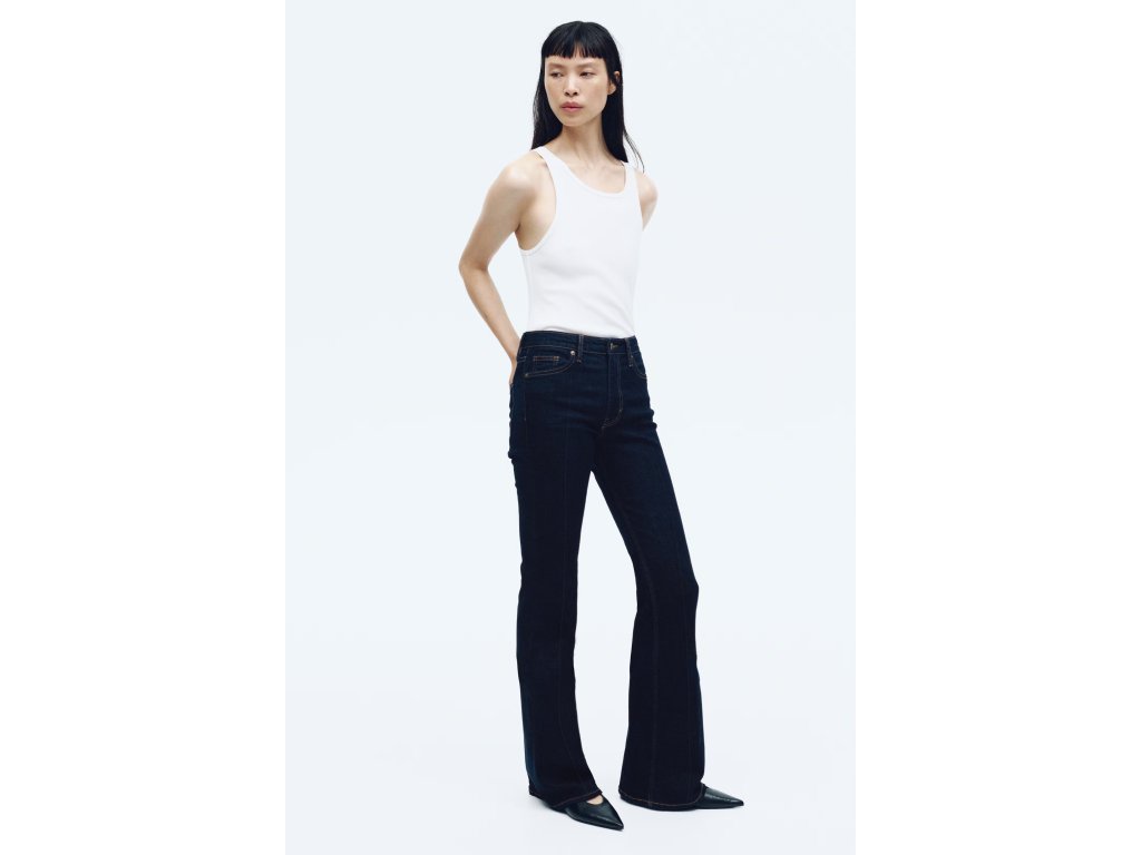 H&M Flared High Jeans – dámské zvonové džíny s vysokým pasem, tmavý denim blue (vel. 36)