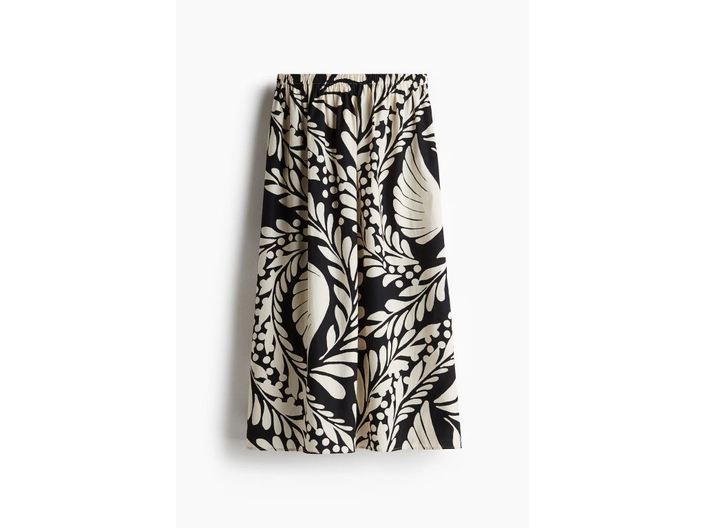 Tato sukně H&M je vyrobena ze 100% bavlny, díky čemuž je lehká, prodyšná a příjemná na nošení. Rozšířený střih do zvonu vytváří krásný pohyb při chůzi a lichotí postavě.