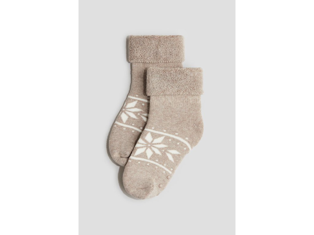 Pohodlné dětské ponožky H&M jsou vyrobeny z měkké bavlněné směsi, která je příjemná na dotek a vhodná pro každodenní nošení. Díky vnitřní froté vrstvě jsou ponožky extra měkké a hřejivé.