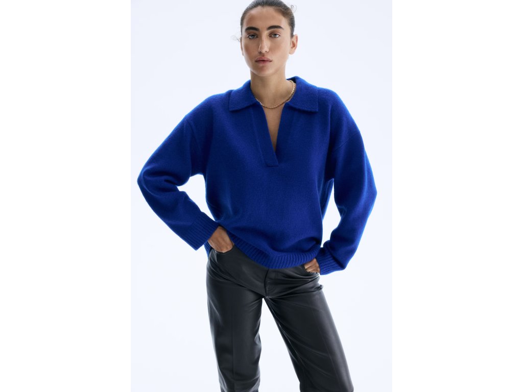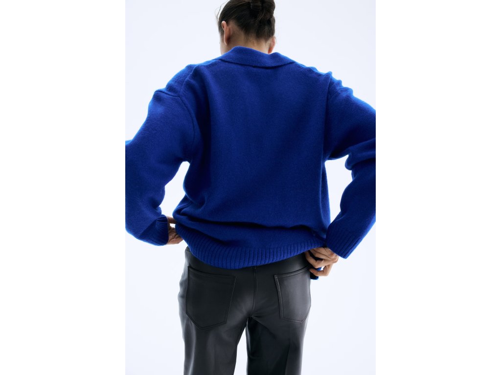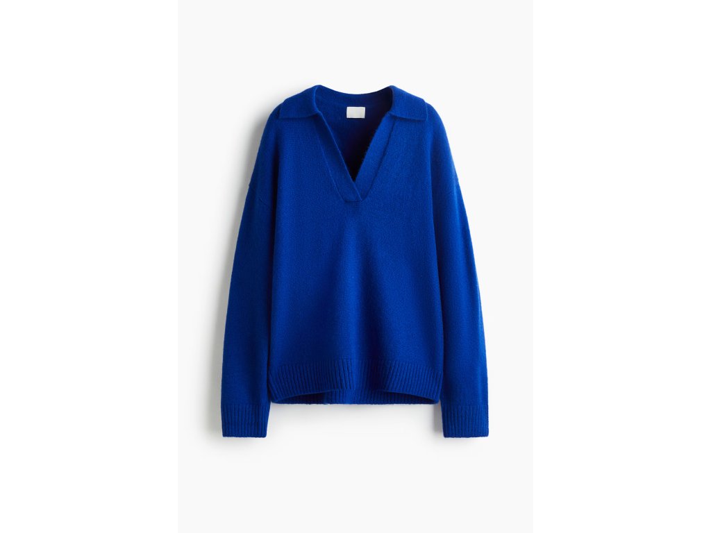 H&M Jemně pletený svetr s límcem – jasně modrý, vel. L