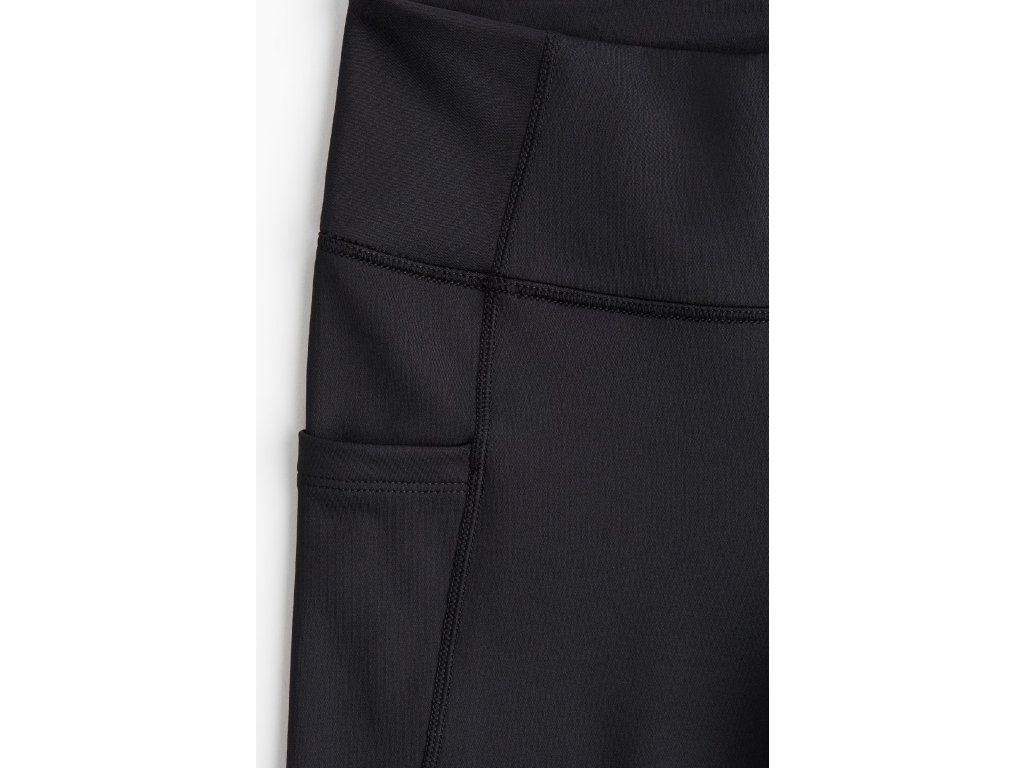 Sportovní legíny H&M Move jsou vyrobené z funkční pružné látky s technologií DryMove™, která pomáhá odvádět vlhkost od pokožky a udržuje příjemný pocit sucha při pohybu. Materiál je lehký, pohodlný a vhodný pro aktivní den.