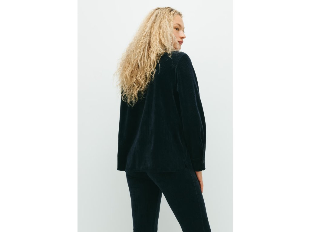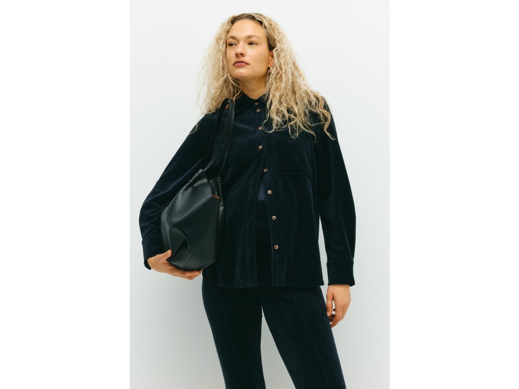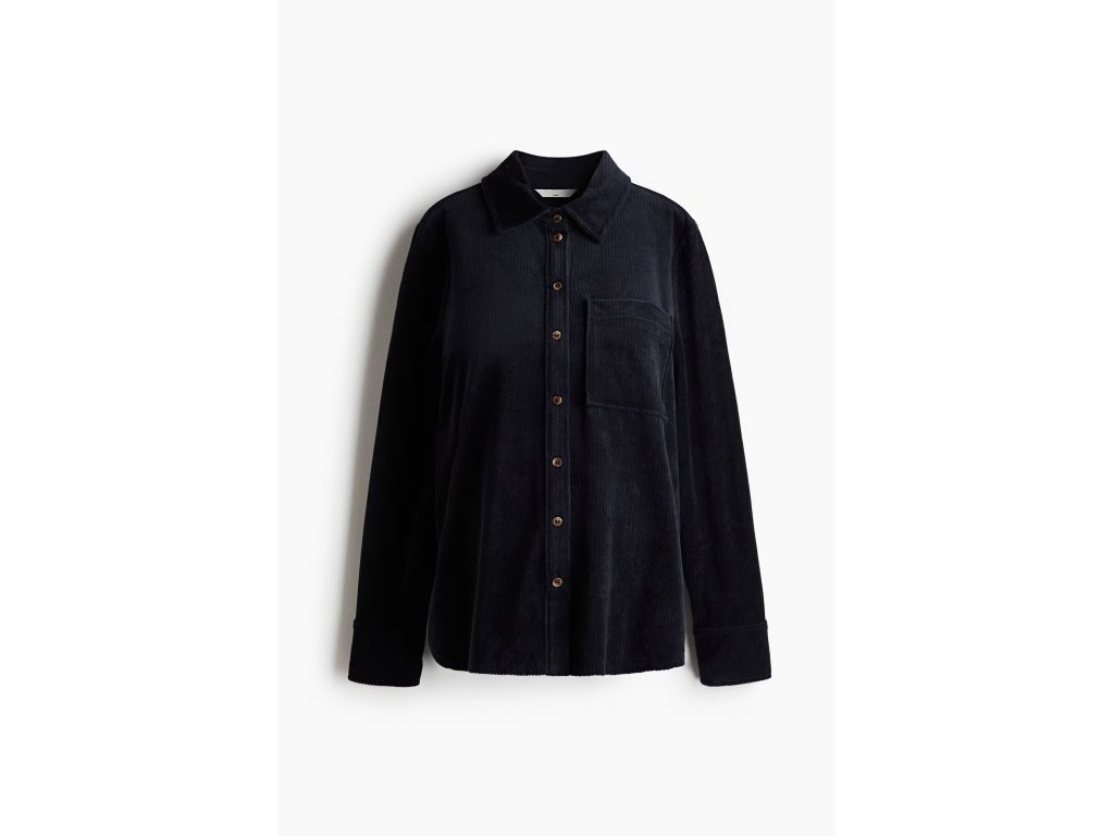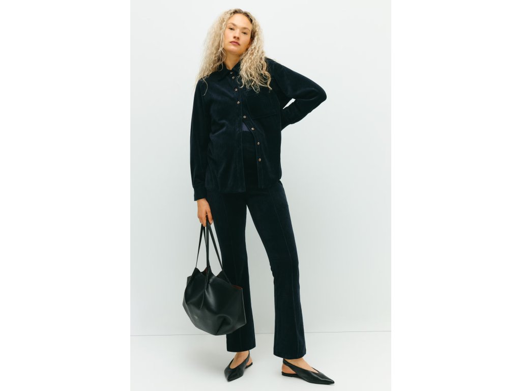 H&M MAMA Žebrovaná velurová košile – námořnická modrá (vel. S)