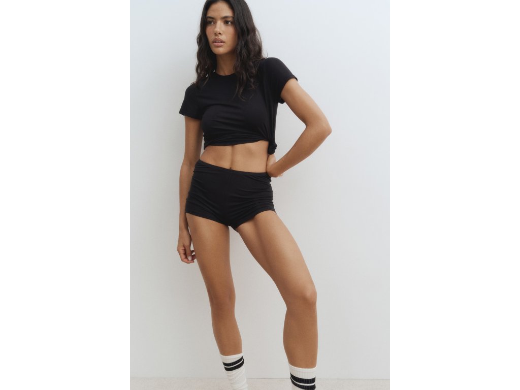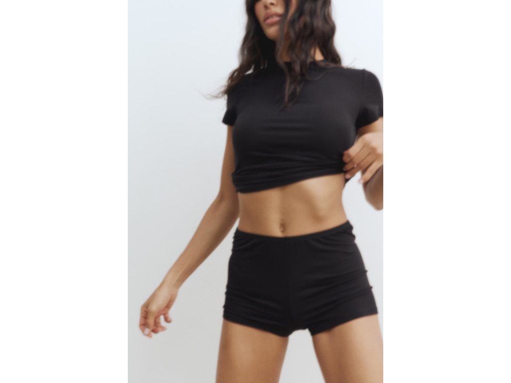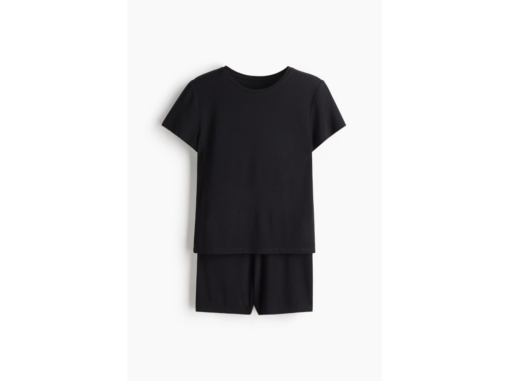 H&M modalové pyžamo – dámská pyžamová souprava tričko + šortky, černá (vel. M)