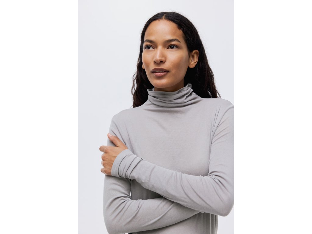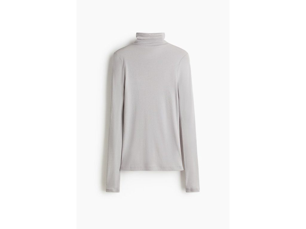 H&M Premium Pima Cotton rolákový top – dámský top s vysokým límcem, světle šedý (vel. S)