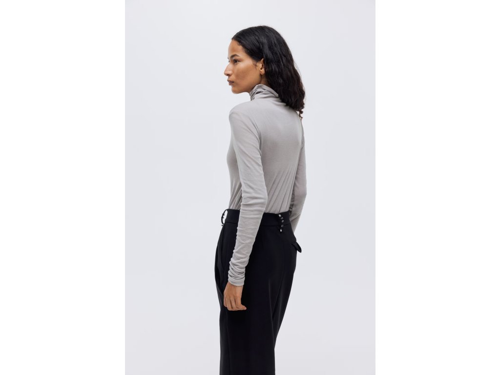 Stylový top z prémiové bavlny Pima, která je známá svou jemností a odolností. Minimalistický design s vysokým límcem je ideální pro elegantní i casual outfit.