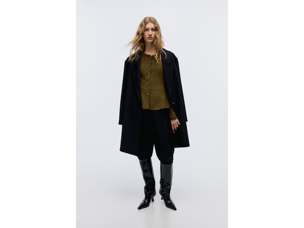 Dlouhé rukávy a neutrální tmavě zelená khaki barva z něj dělají univerzální kousek vhodný jak k džínám, tak k sukni nebo elegantním kalhotám.