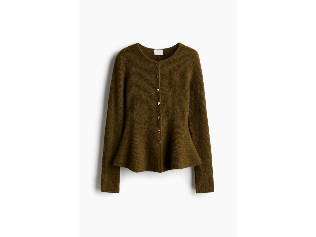 H&M Propínací svetr peplum z žebrovaného úpletu – tmavě zelená khaki, vel. M