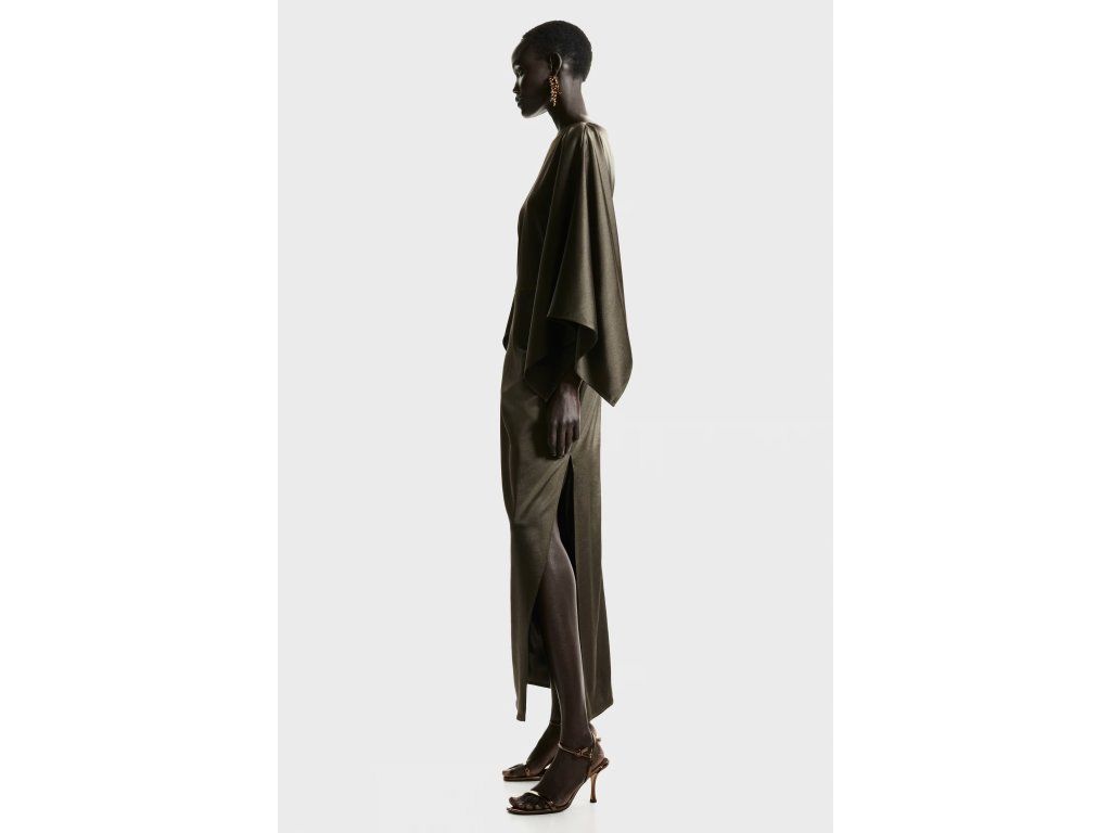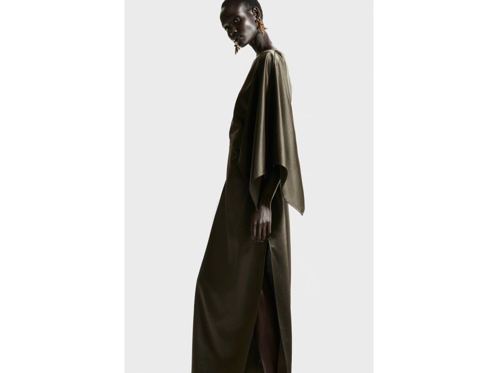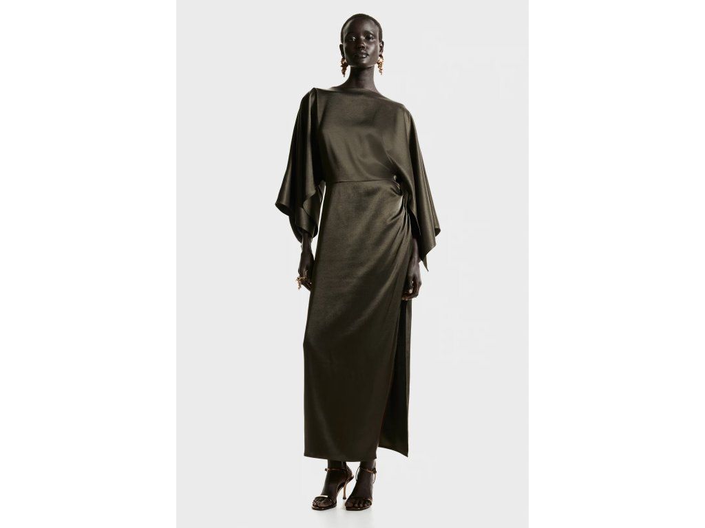 H&M saténové šaty s pelerínkou – elegantní model s výraznou siluetou