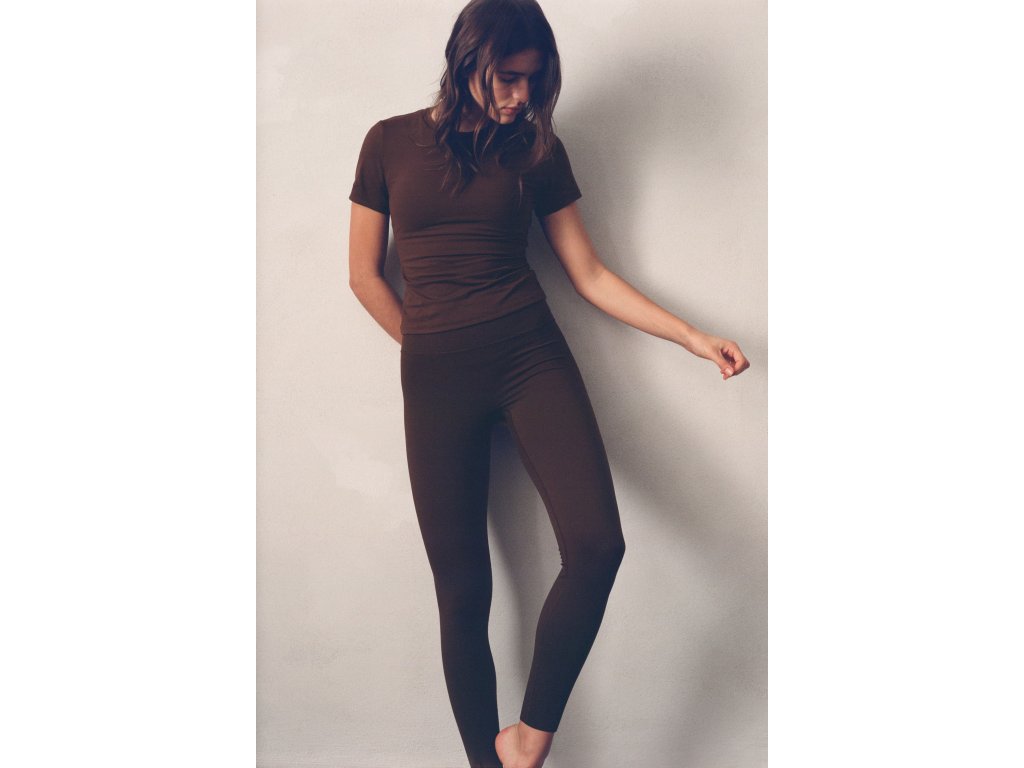Model má vysoký pas se širokým dílem, který pomáhá zpevnit oblast pasu a zajišťuje stabilní držení během pohybu. Jednobarevné hnědé provedení je stylové a snadno kombinovatelné s různými sportovními topy nebo mikinami.